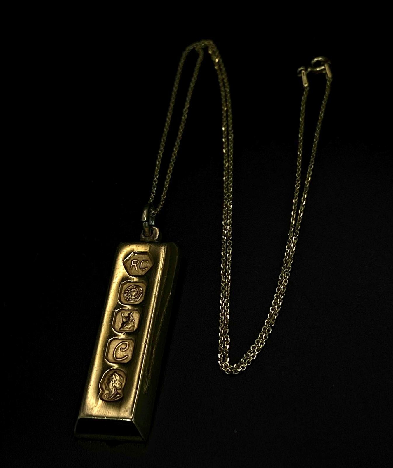 1977 Silver Gilt Jubilee Ingot Pendant Necklace.