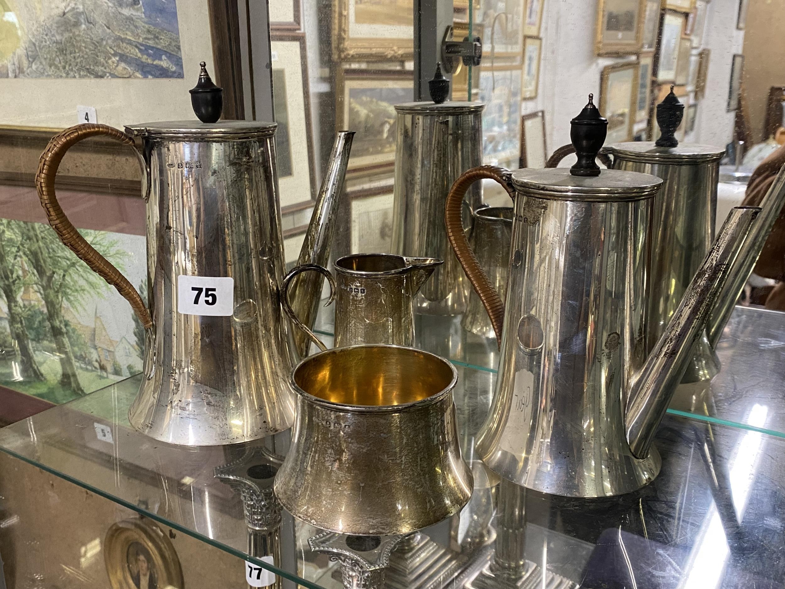Silver art deco four piece tea service, hallmark Birmingham 1918