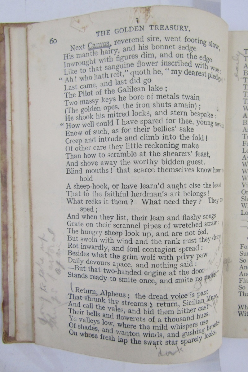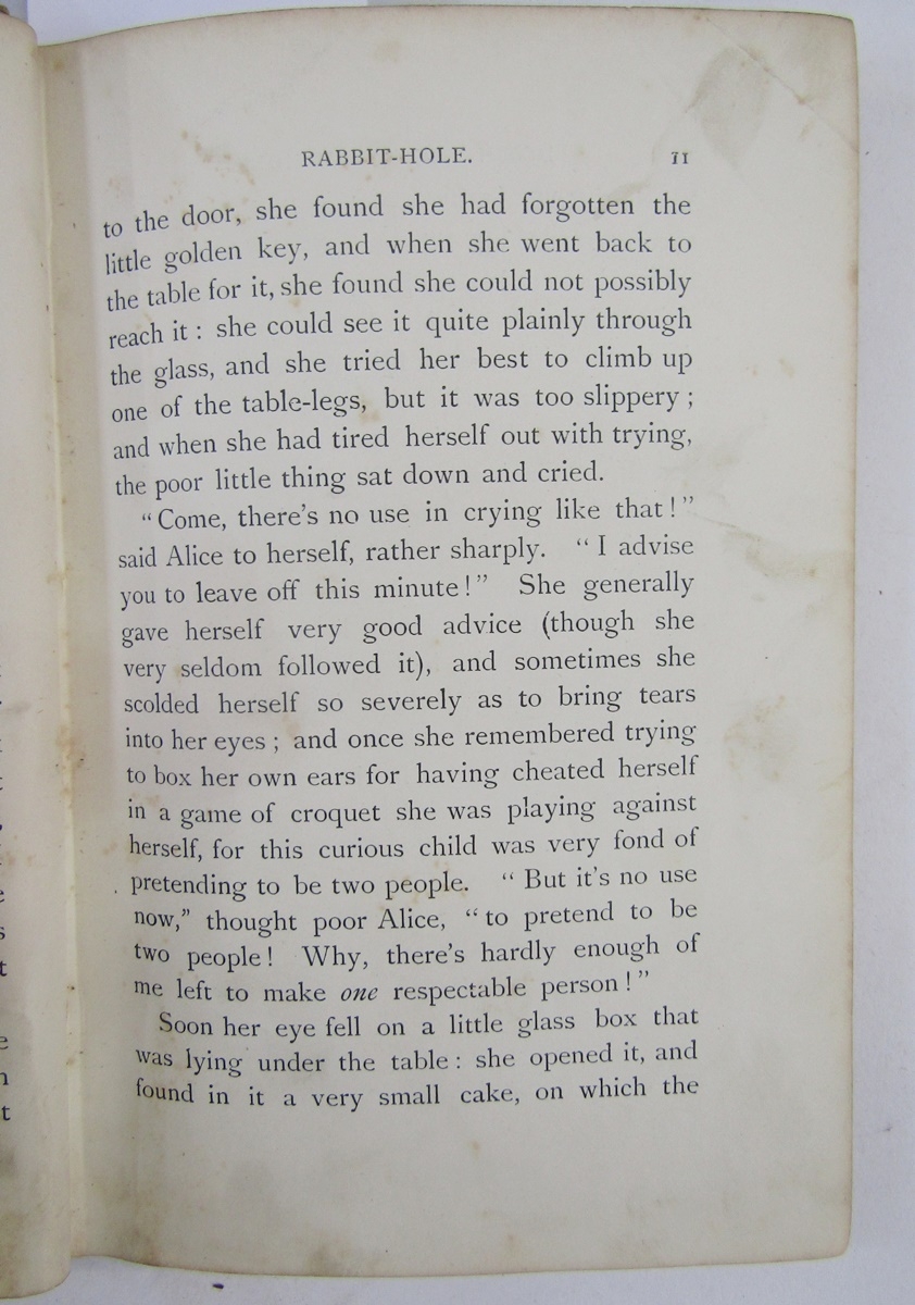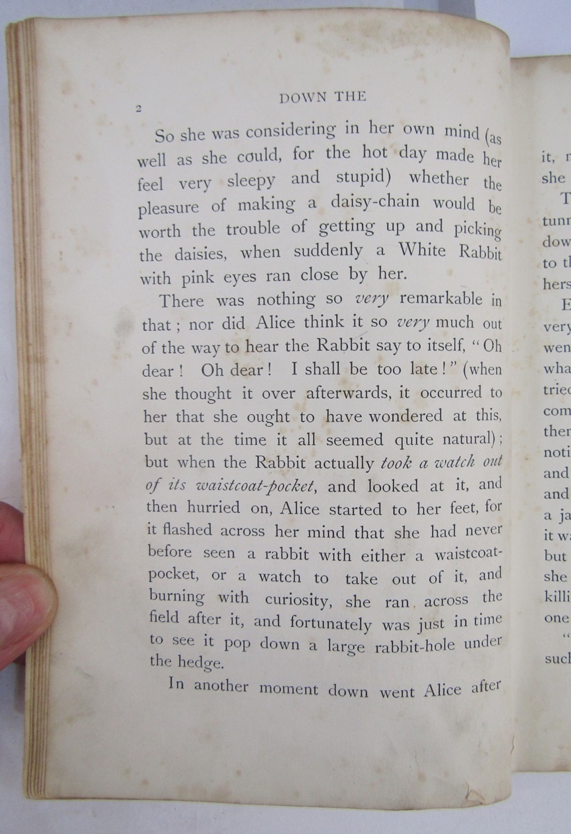 'Alice's Adventures in Wonderland' has marks to many of the pages and wear to the cover commensurate with age, 'Through the Looking Glass' has a tear to one page, but otherwise in generally good condition, 'The Golden Treasury' has some wear to the cover, but otherwise in generally good condition (writing on some pages), 'Vic, a Book of Animal Stories' has foxing to the pages and wear to the cover commensurate with age, 'A Book of Old Ballads' has wear to the edge of the pages, all other books appear to be in good condition. See additional catalogue photos.