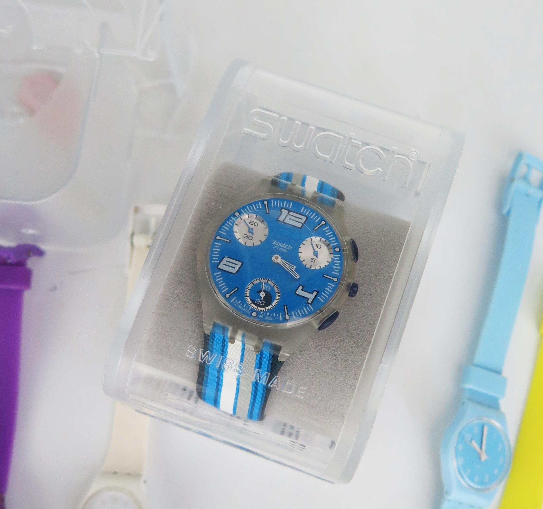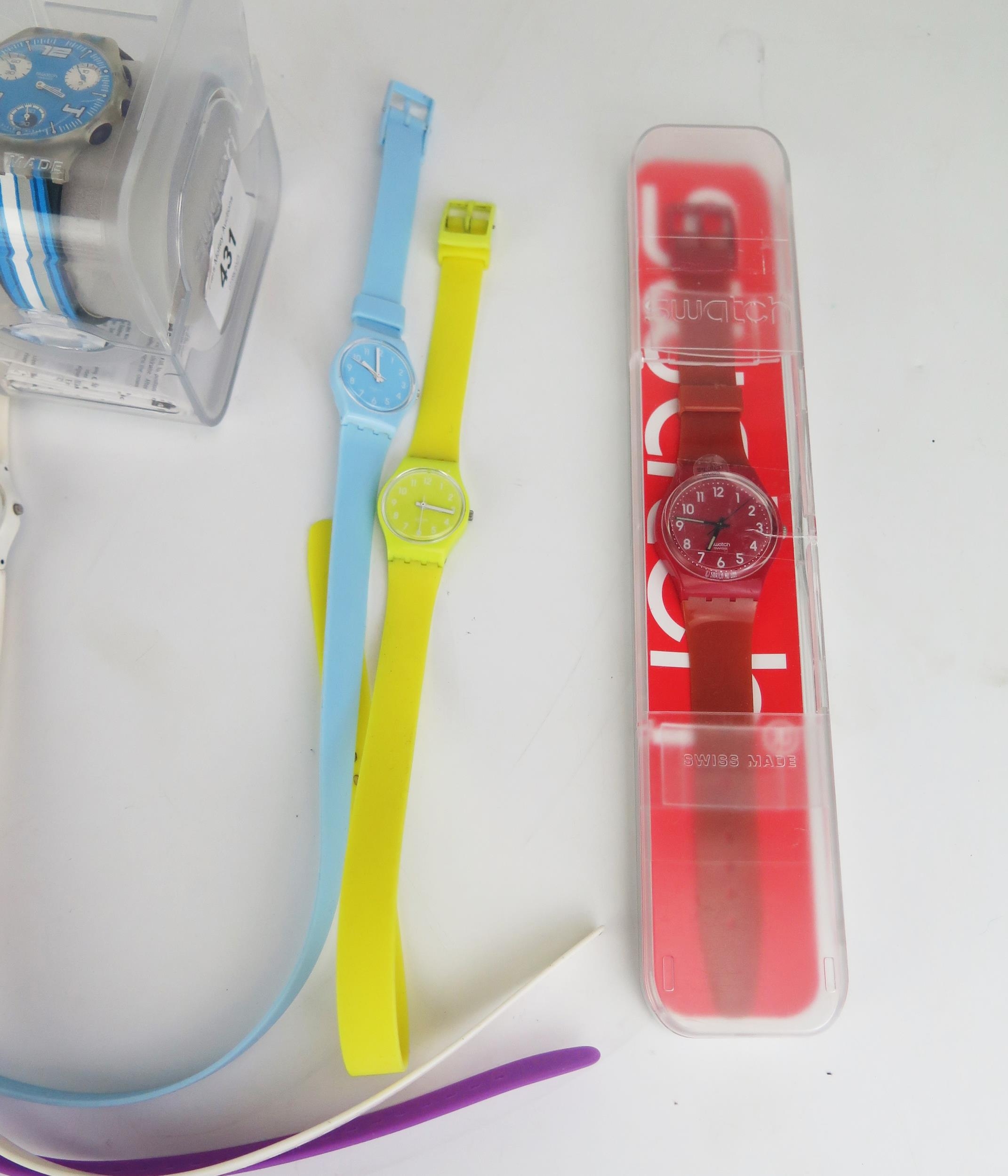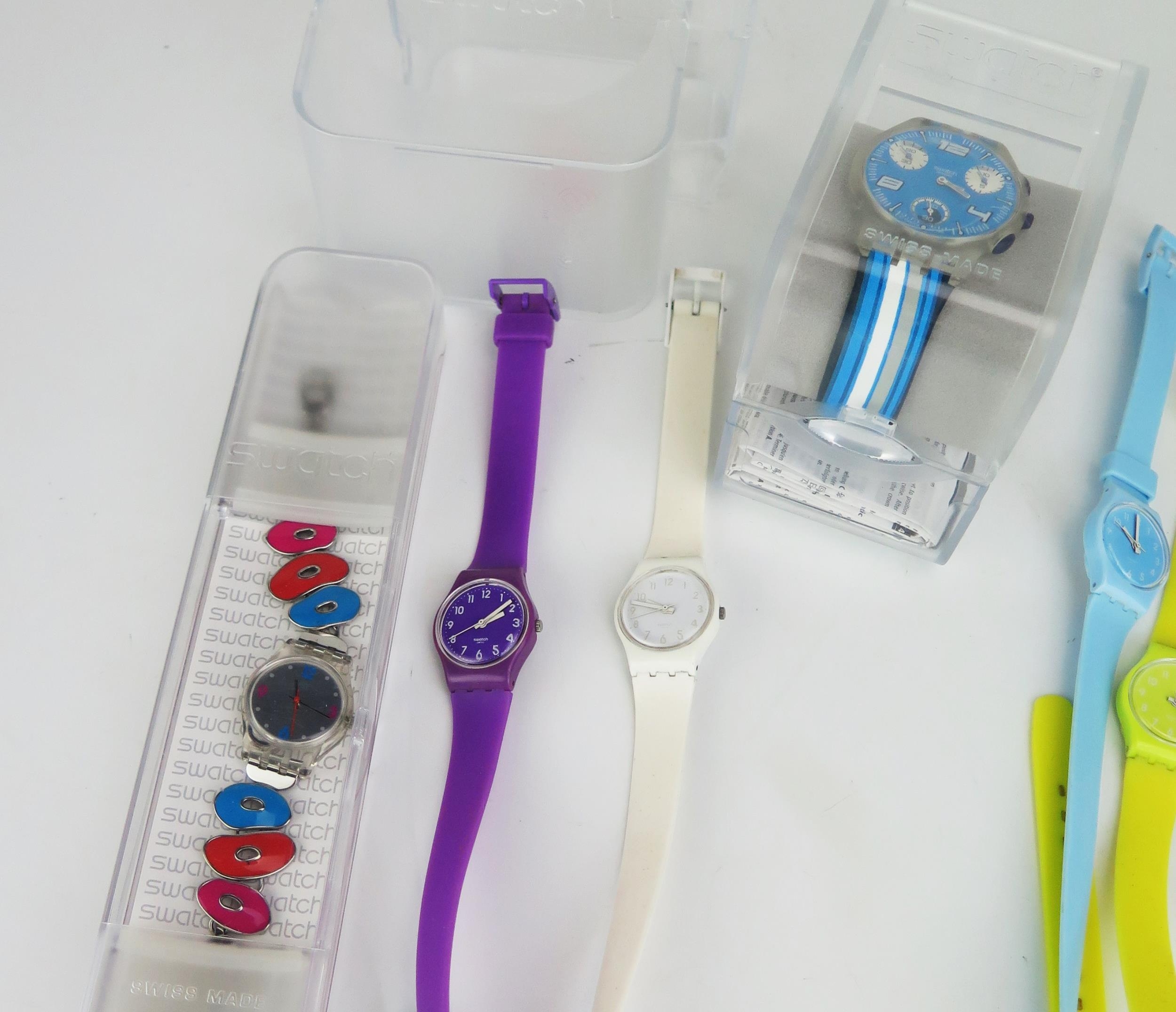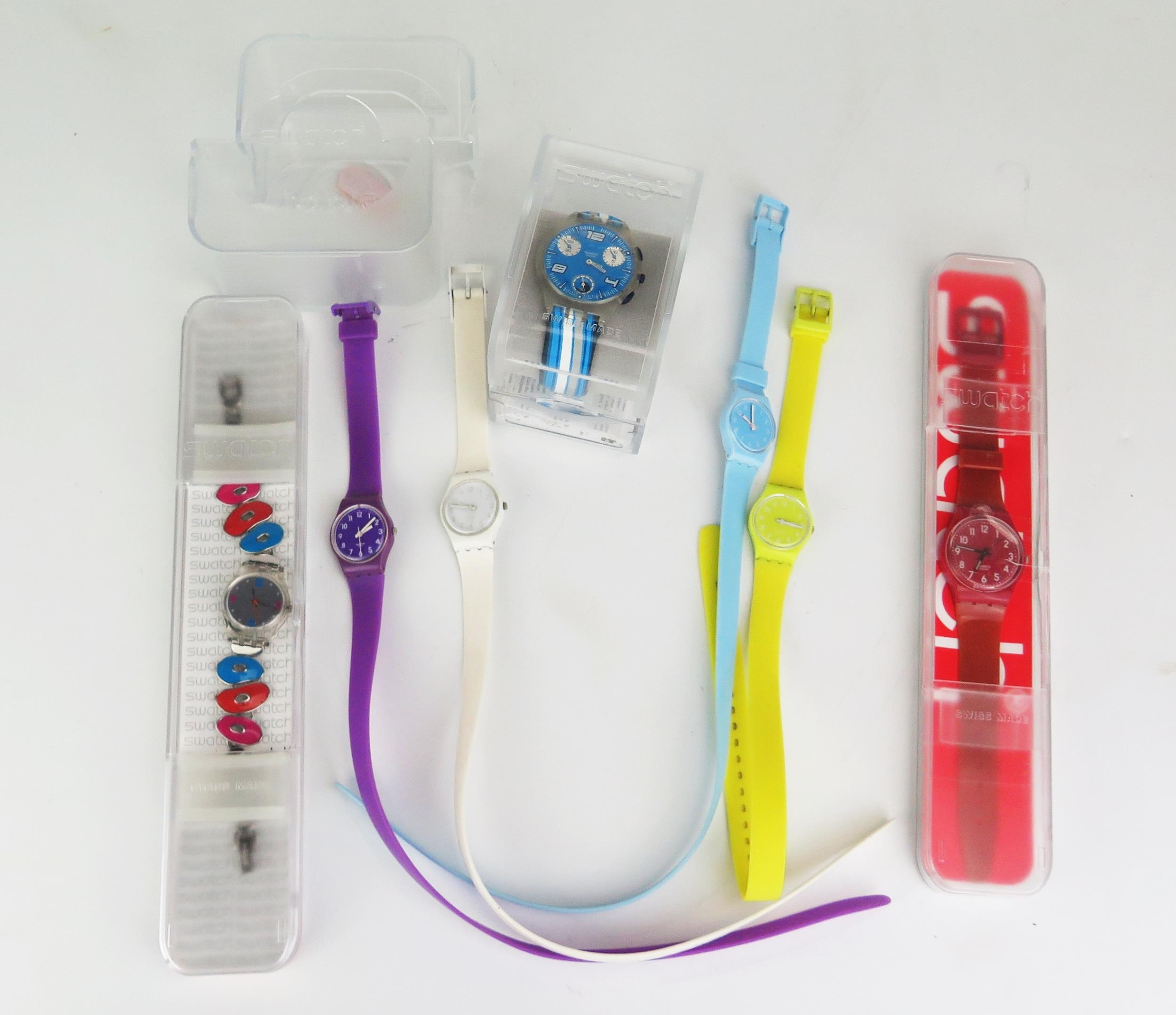 A Selection of SWATCH Watches including Pinusinna Multicolour LK312G, SUYK115-25, GR154 AND four ladies Longstrap