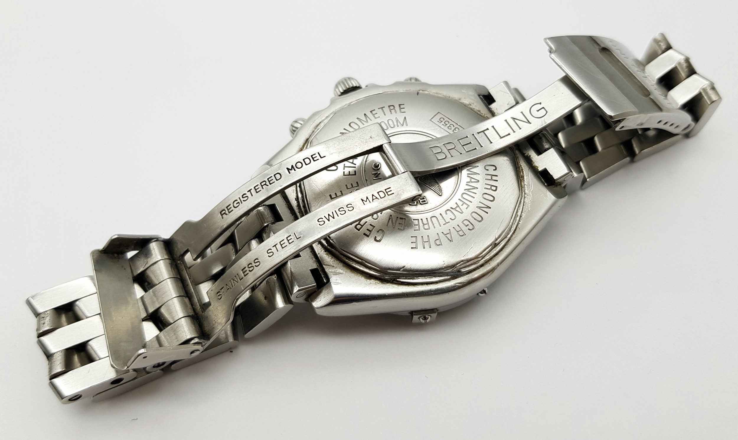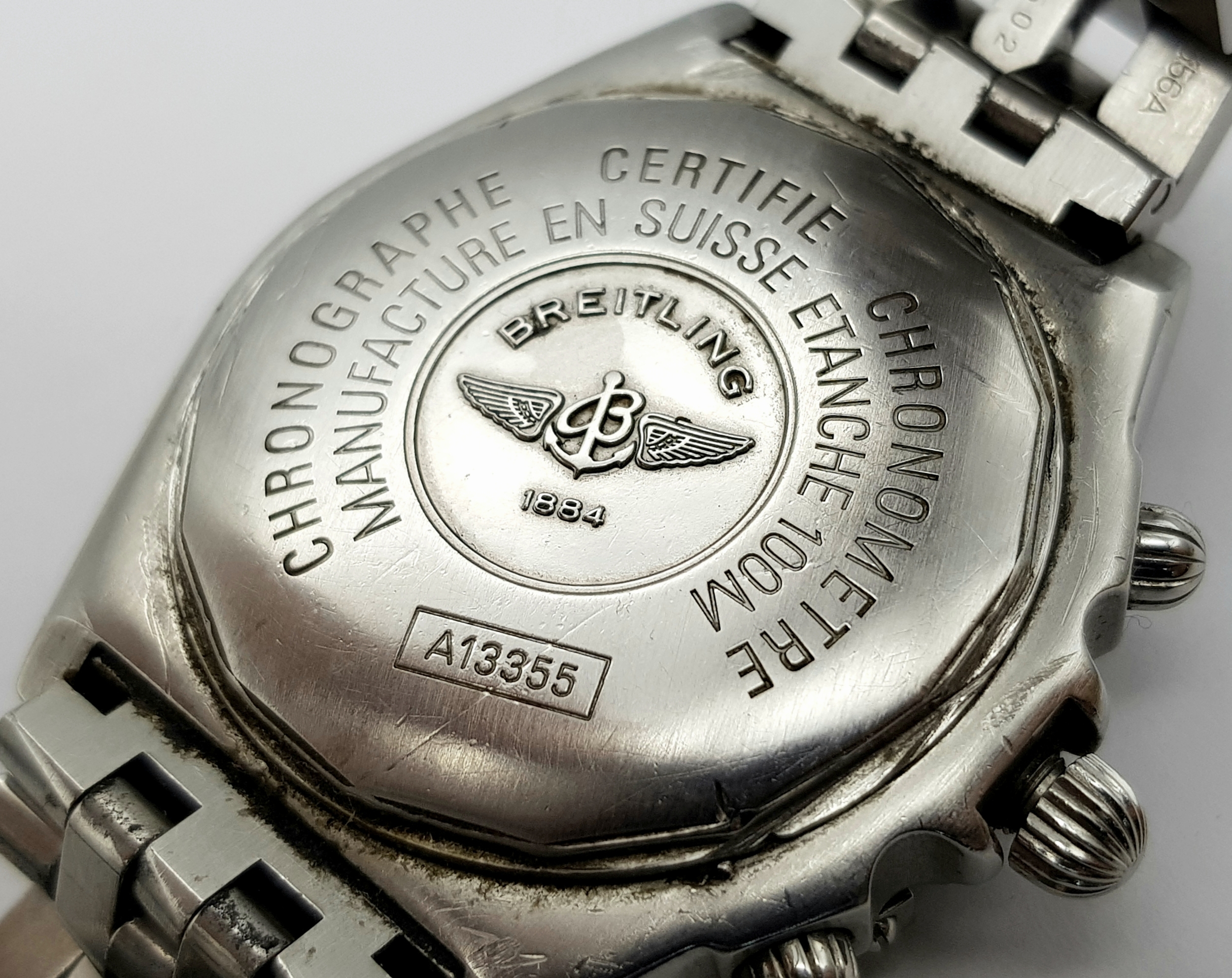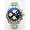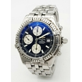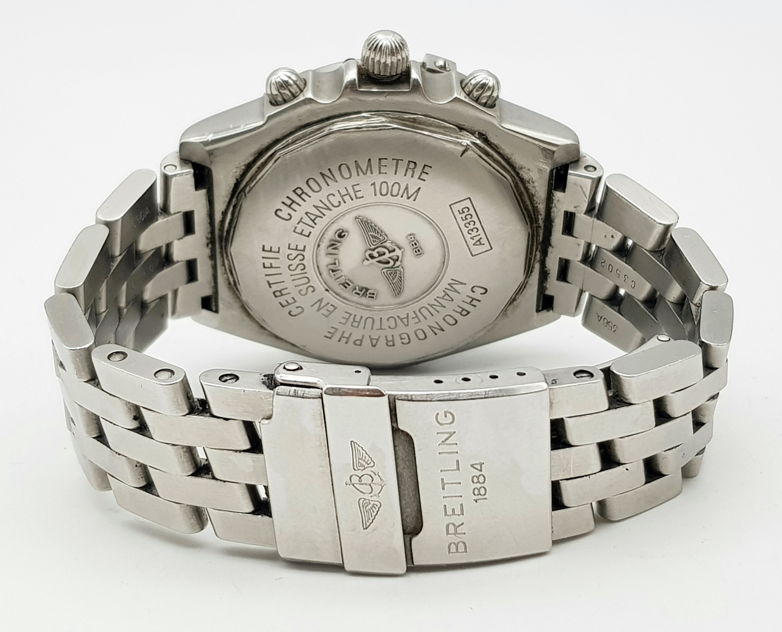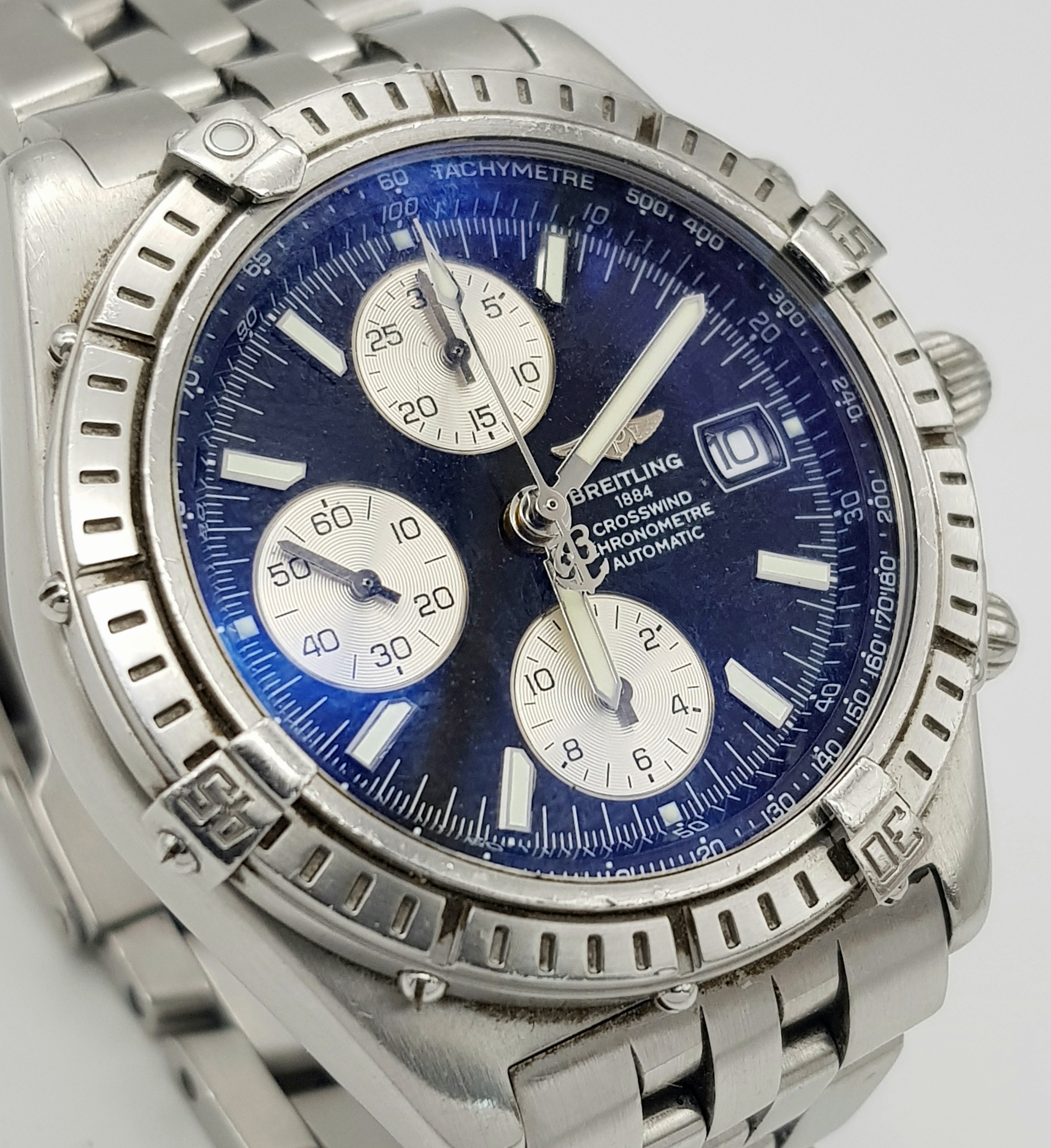 A BREITLING 1884 CROSSWIND CHRONOMETRE AUTOMATIC GENTS WATCH. MODEL A13355. STAINLESS STEEL BRACELET AND CASE - 44MM. BLACK DIAL WITH THREE SUB DIALS. IN FULL WORKING ORDER. PN-8054