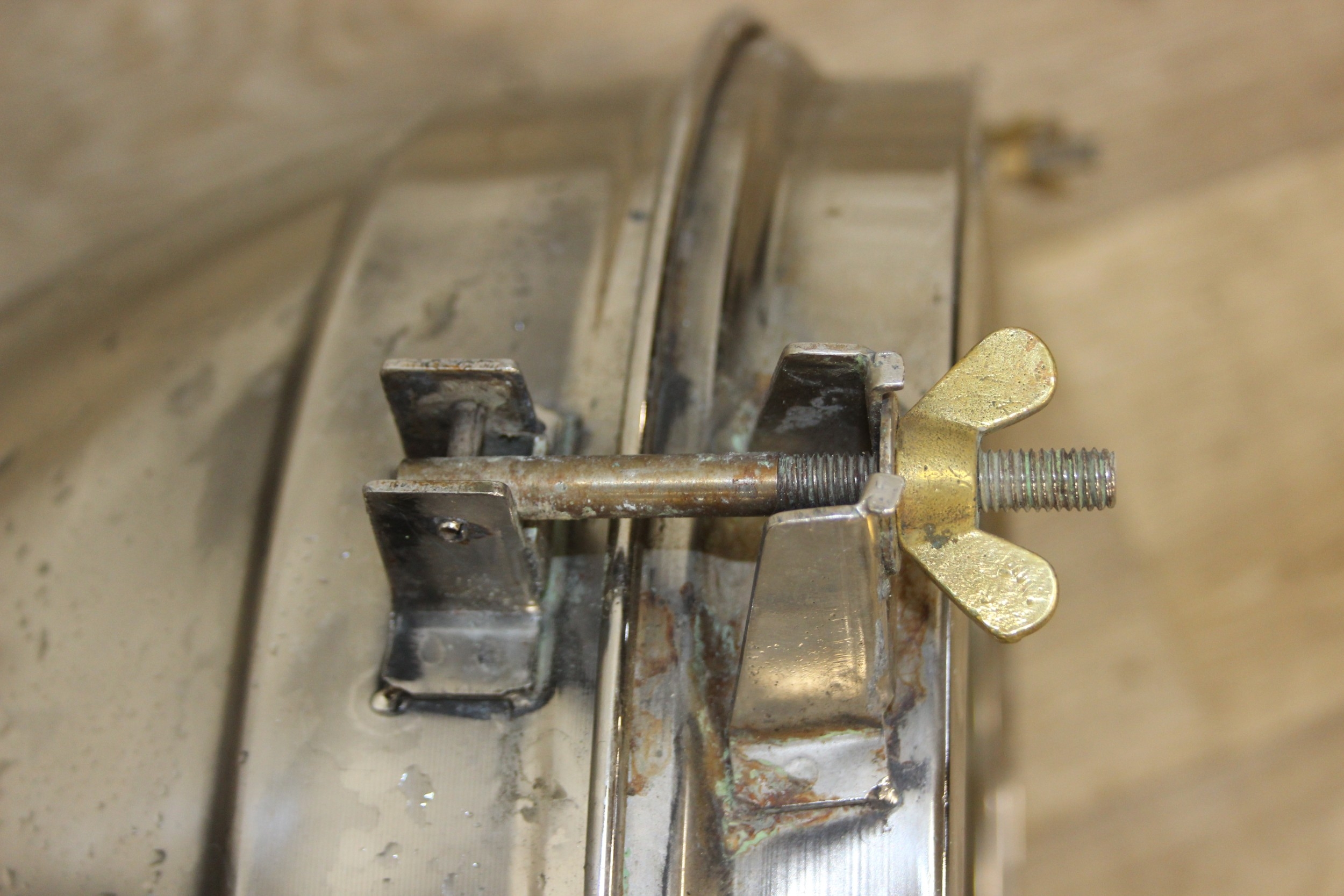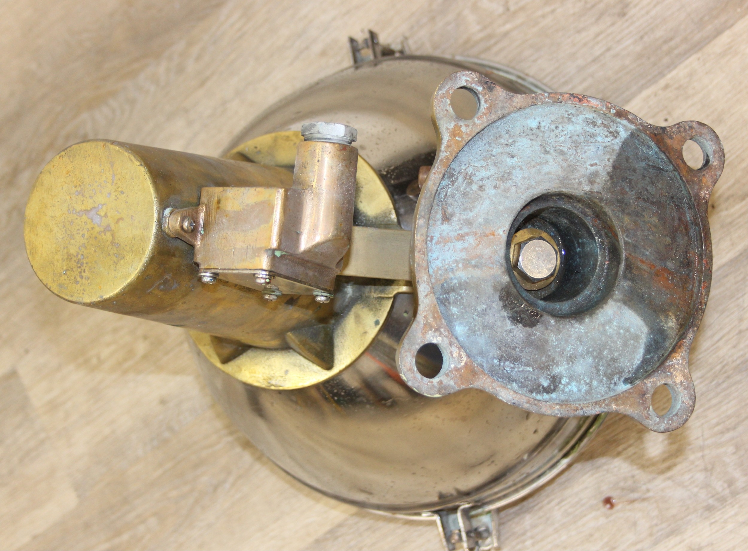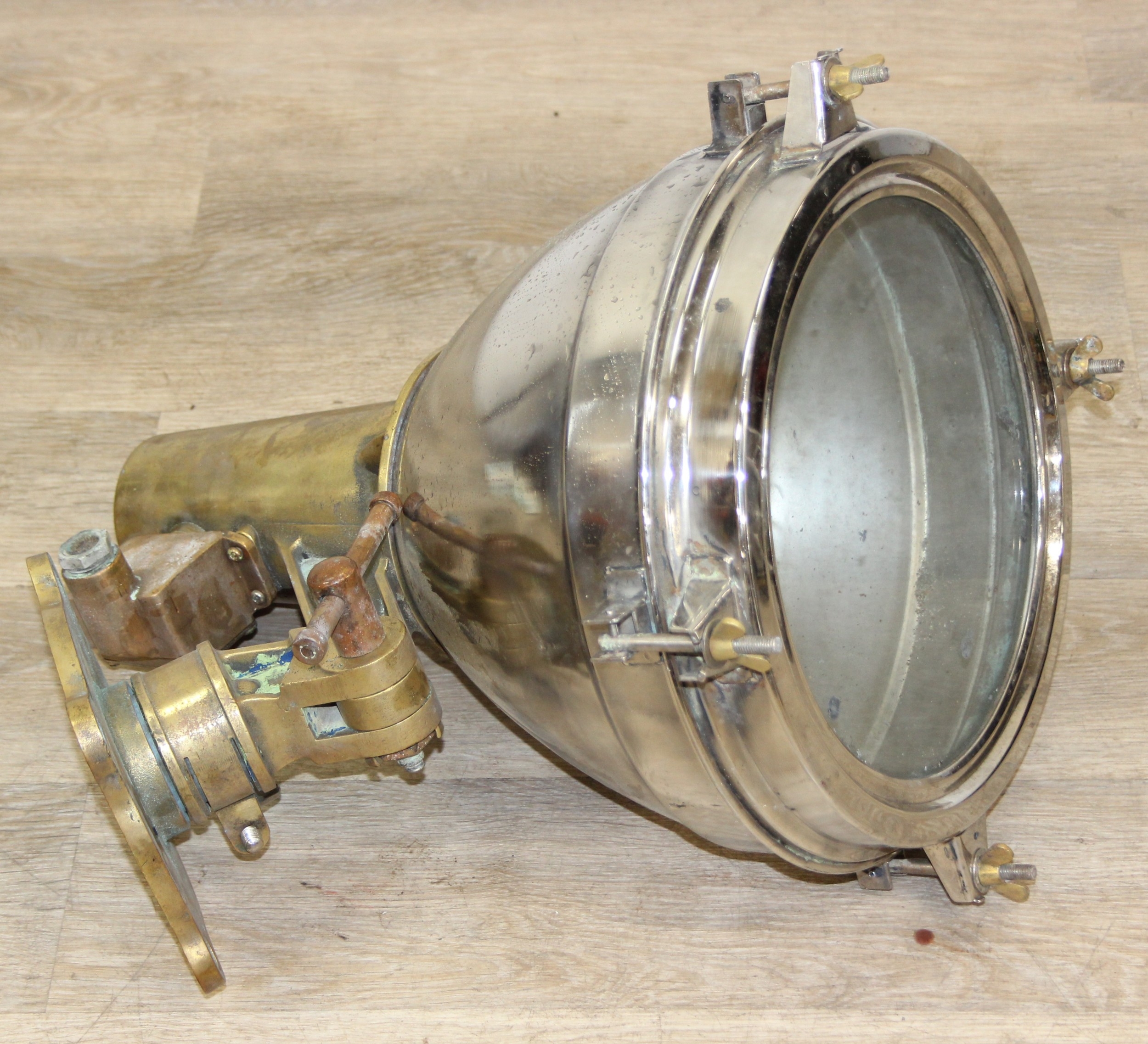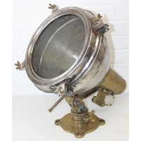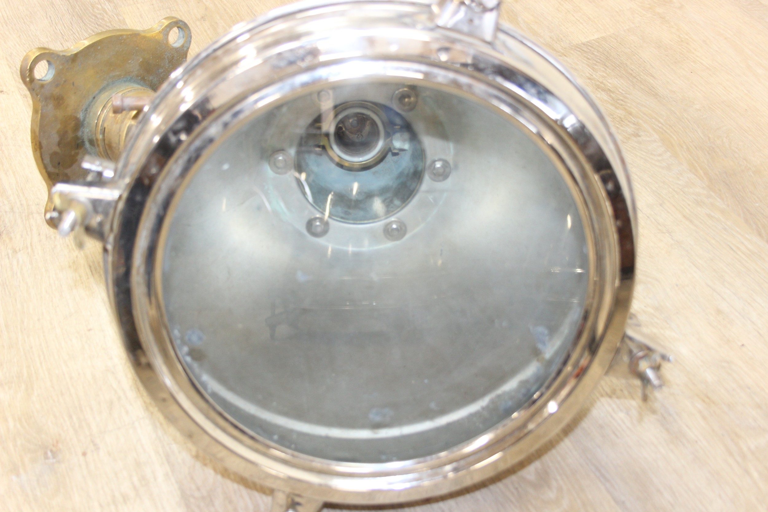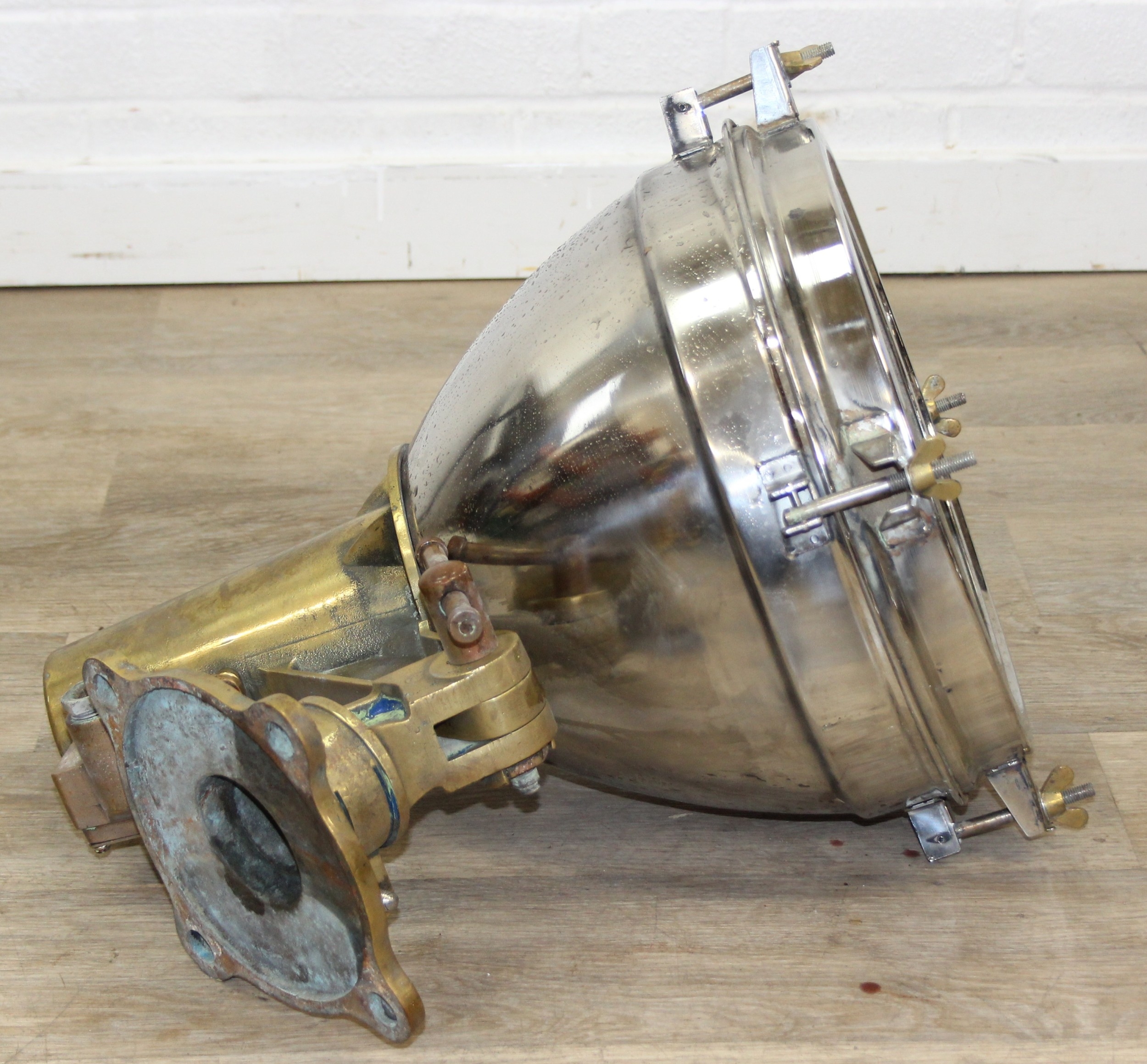 Marine lamps - chrome and brass lamp with heavy duty brass bracket and four wingnut fastenings to lens, diameter 34cm x depth 50cm excluding bracket