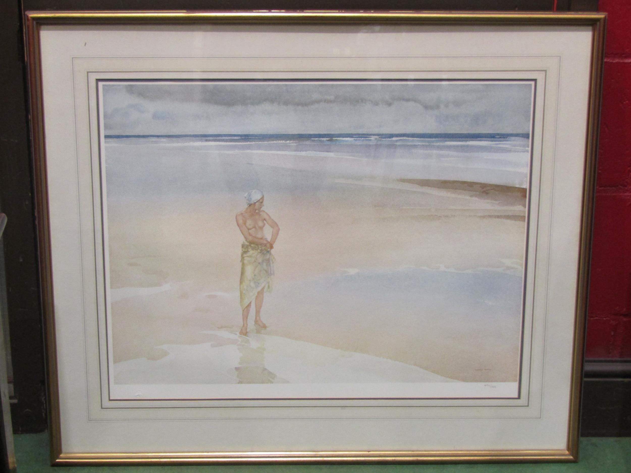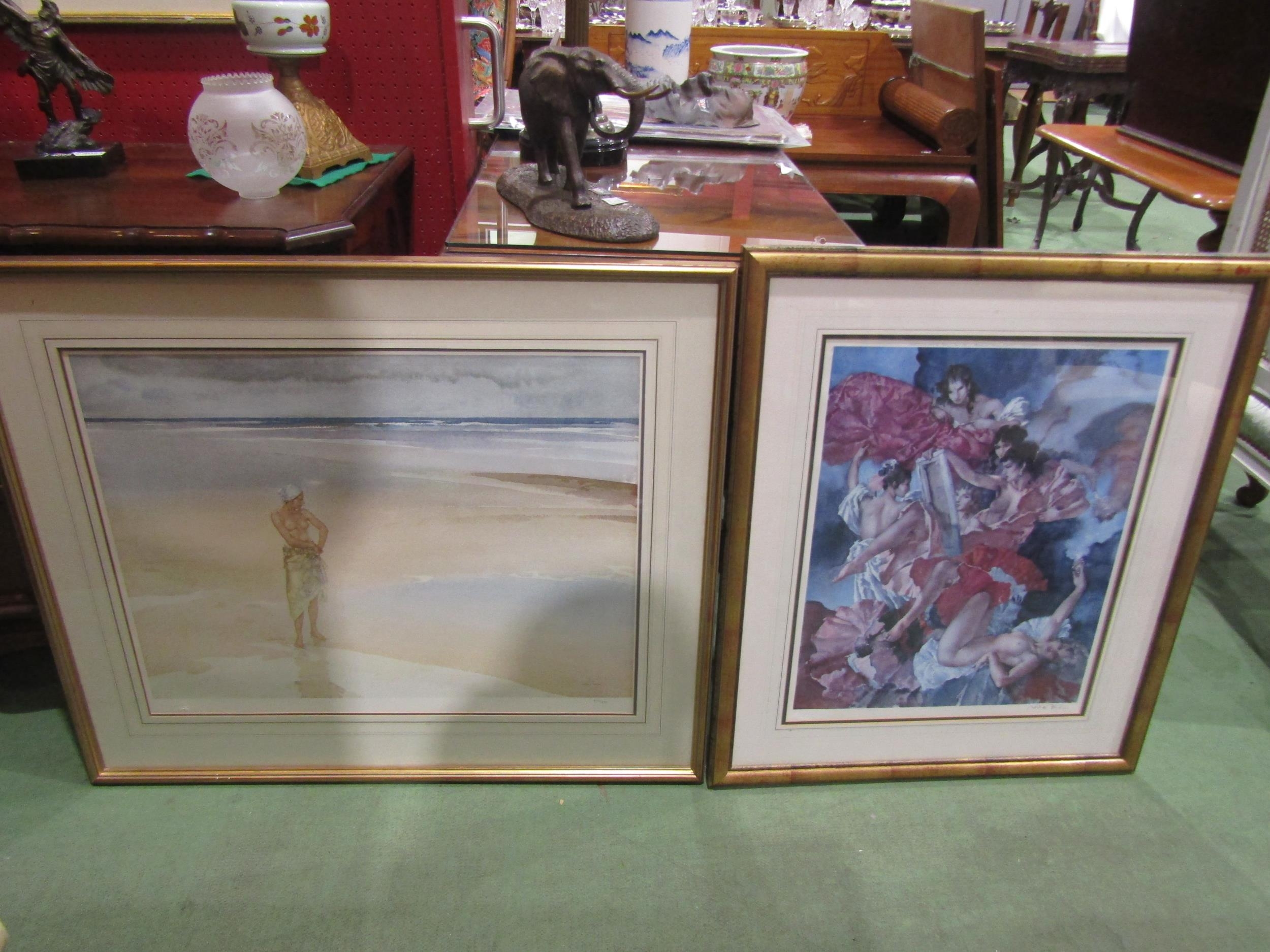 Two William Russell Flint prints including limited edition of semi-clad girl on beach no. 490/850, 54m x 69cm image size, both framed and glazed