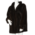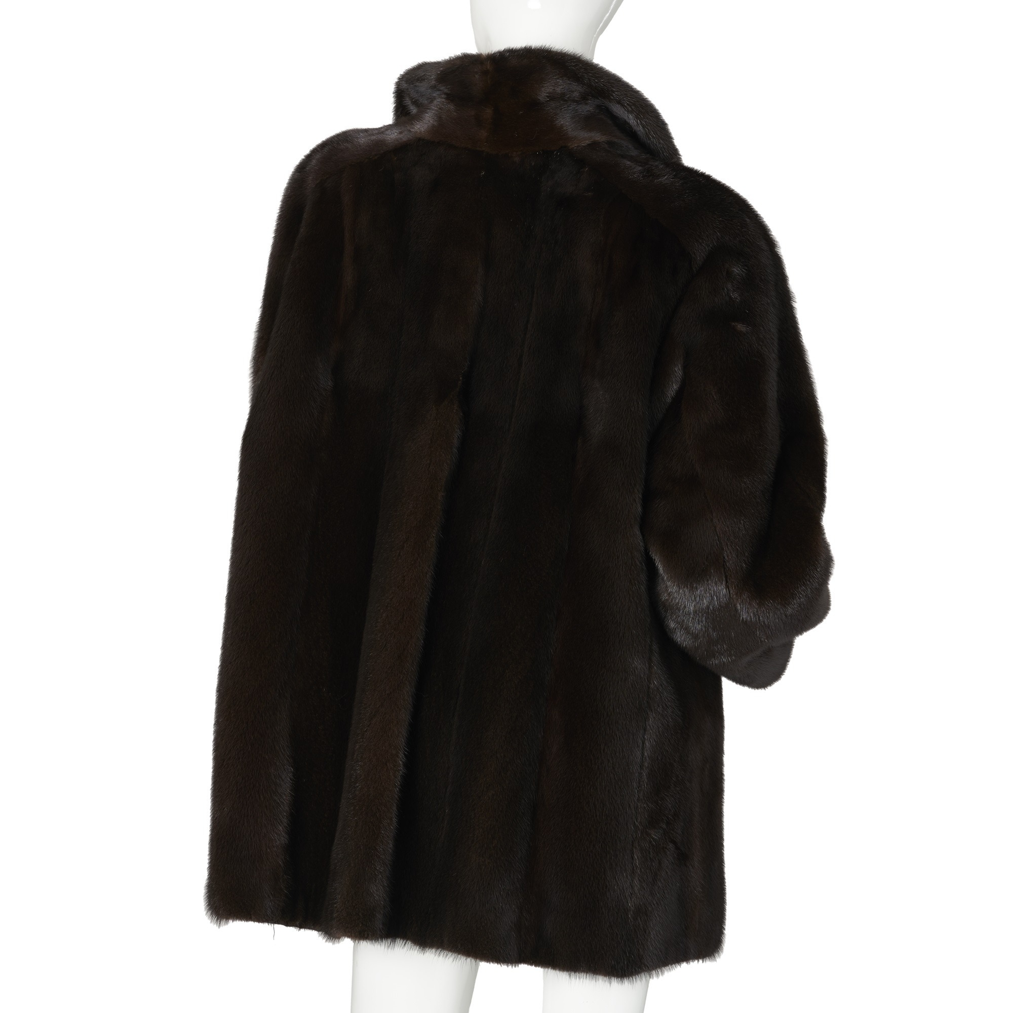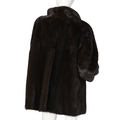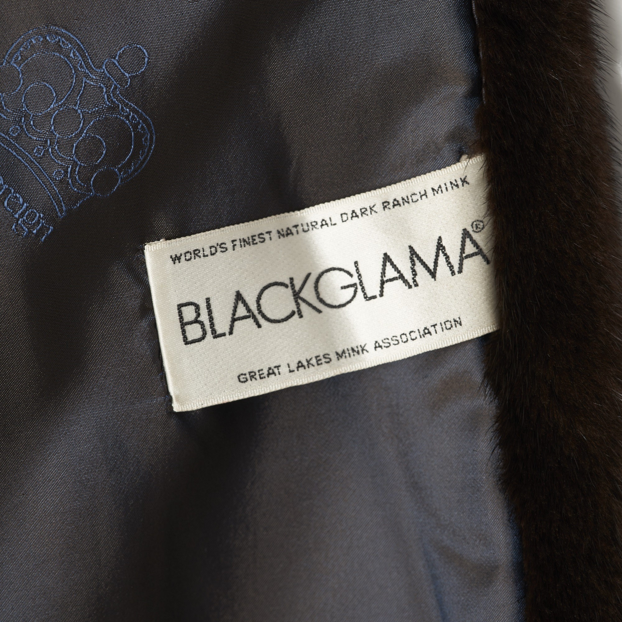 Blackglama, a dark ranch mink jacket, featuring a lapel collar, hook and eye clip fastenings, fitted cuffs and two outer pockets, labelled Blackglama, chest measures approximately 48 inches