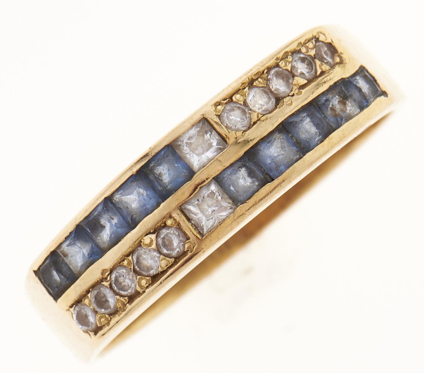 A tanzanite and white stone ring, in 18ct gold, 4.8g, size Q