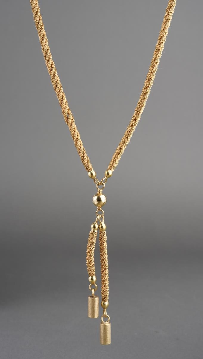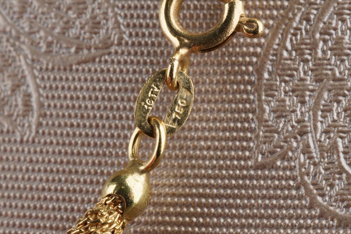 A neckace, stamped 750. The rope twist necklace with textured bar terminals, stamped 750, approx length 450mm, approx gross weight 35.8 grams.
