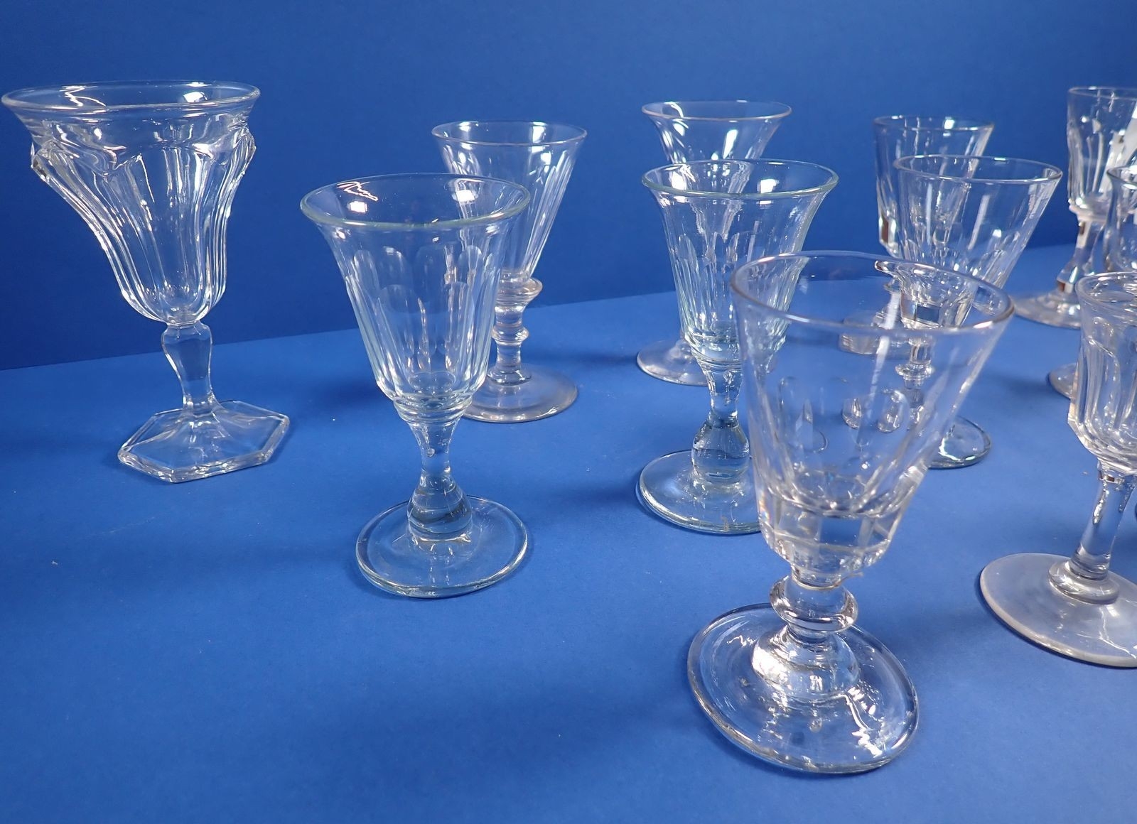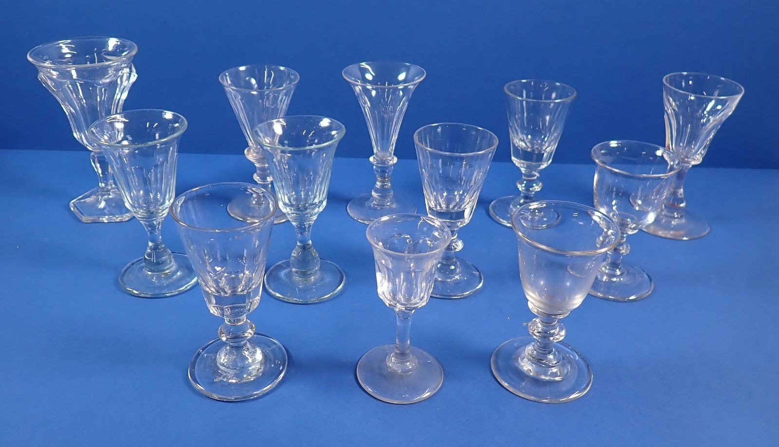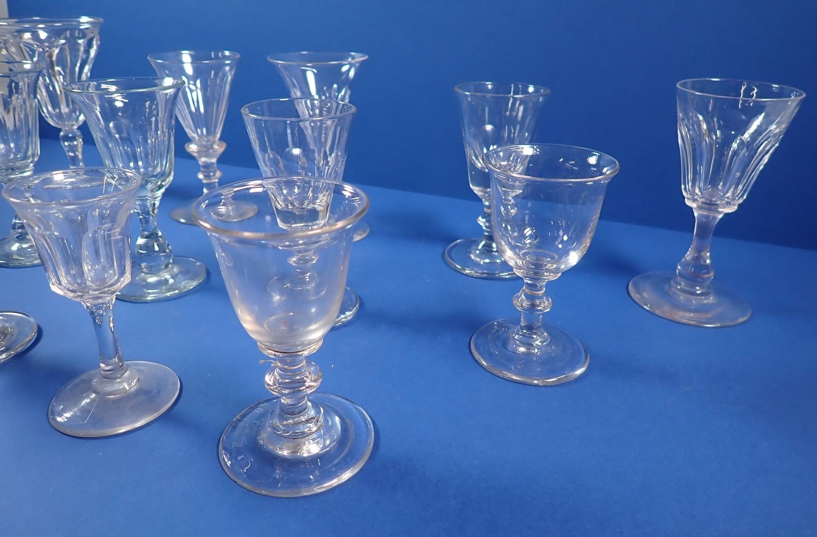 A collection of 18th century and later drinking glasses, tallest 13.5cm tall