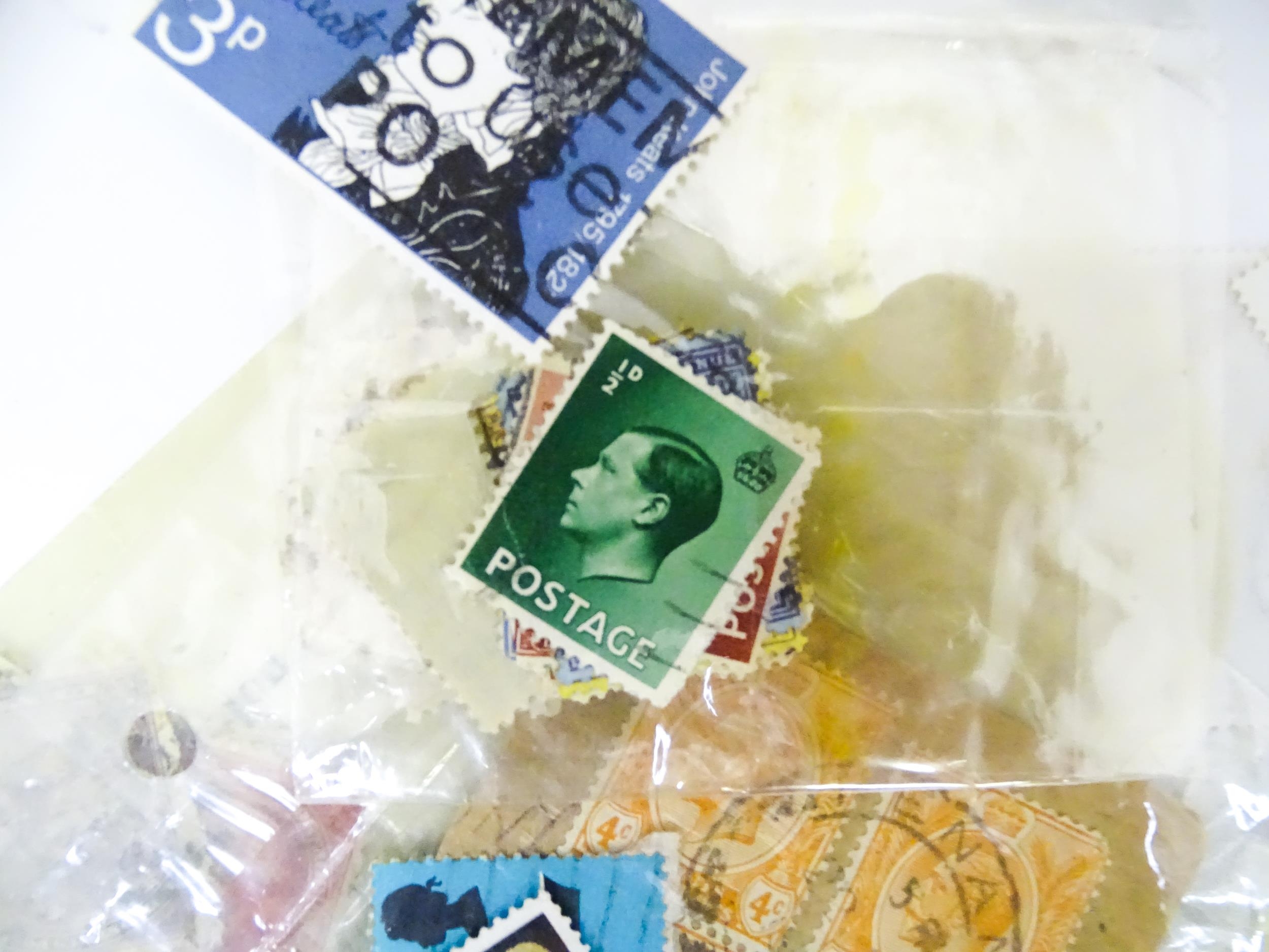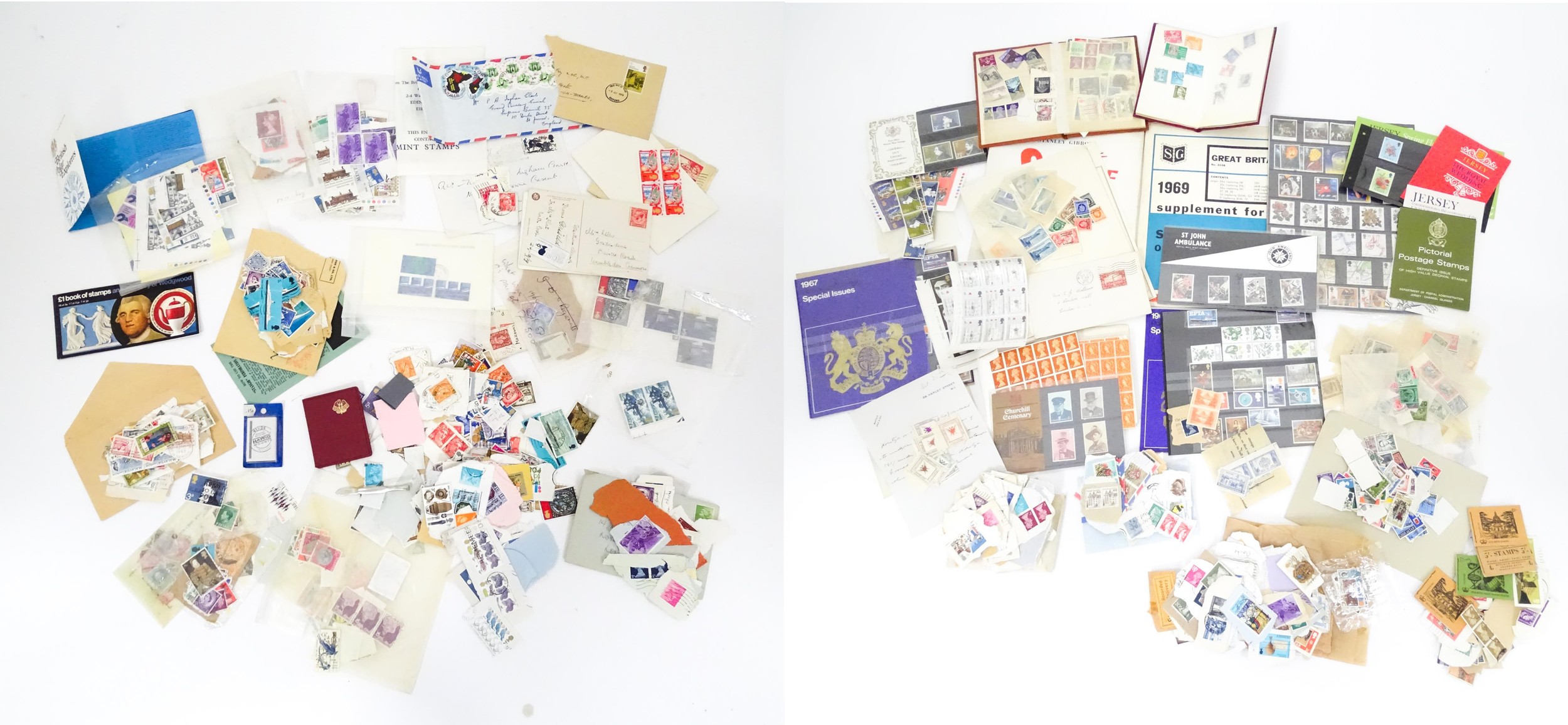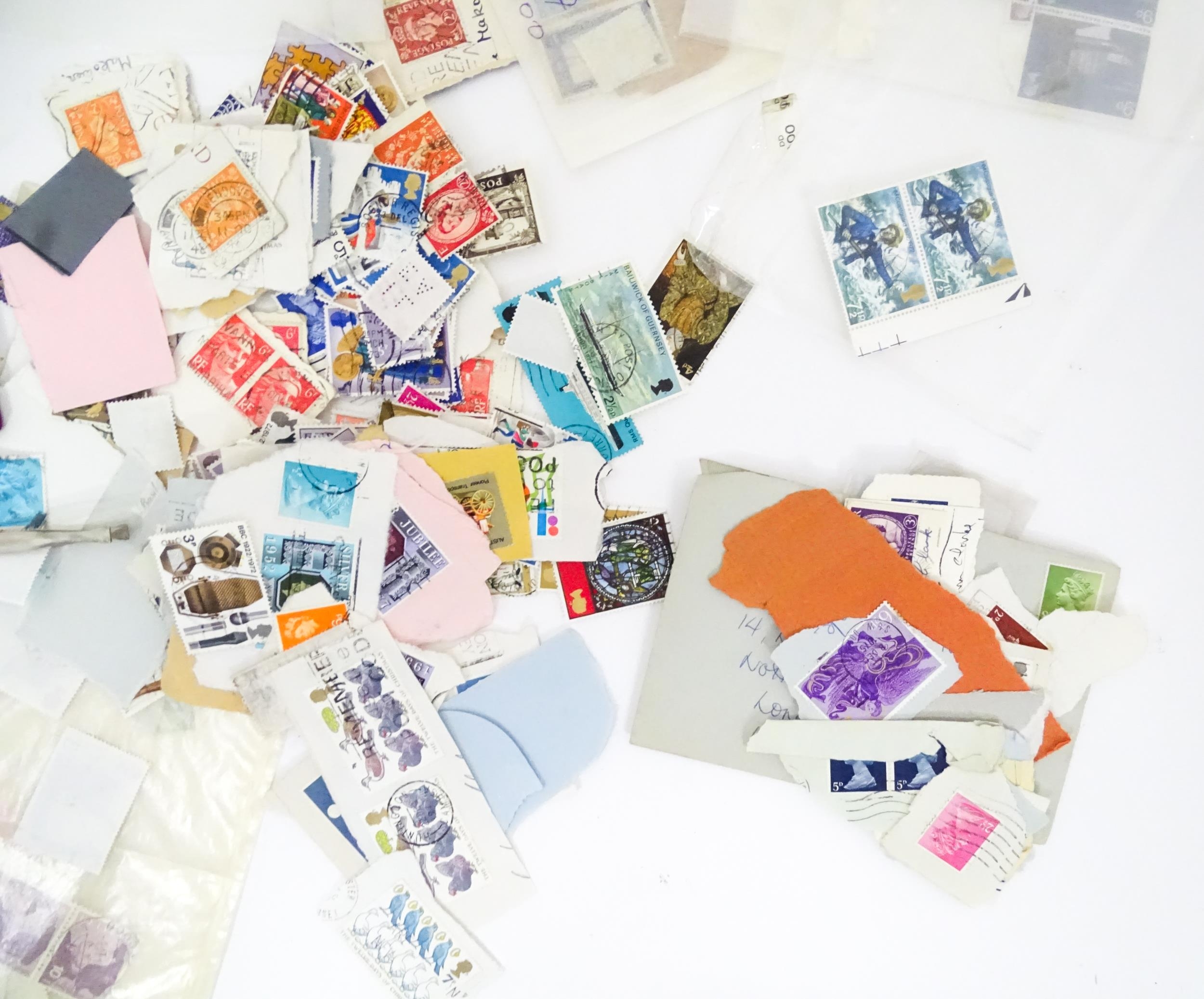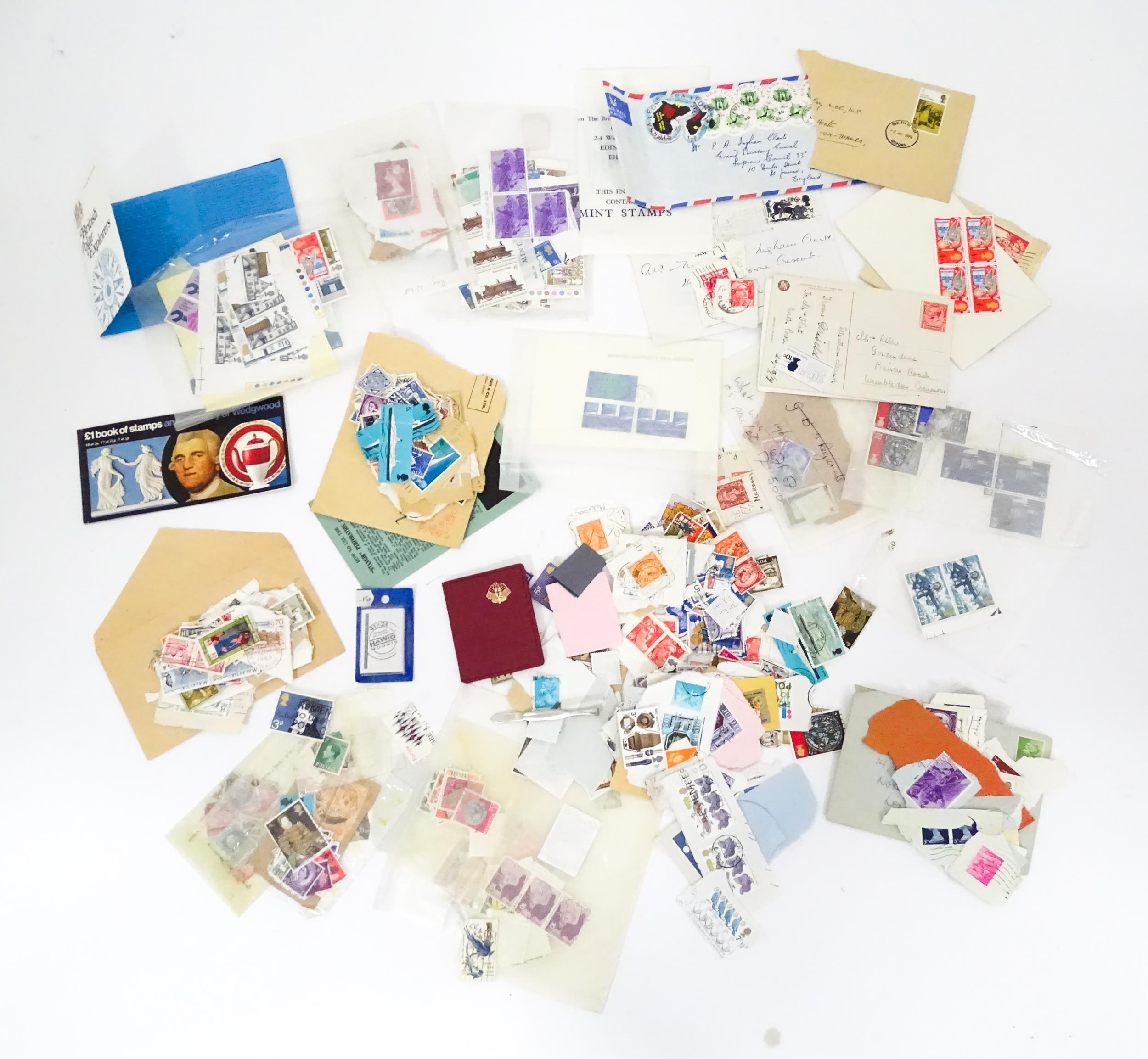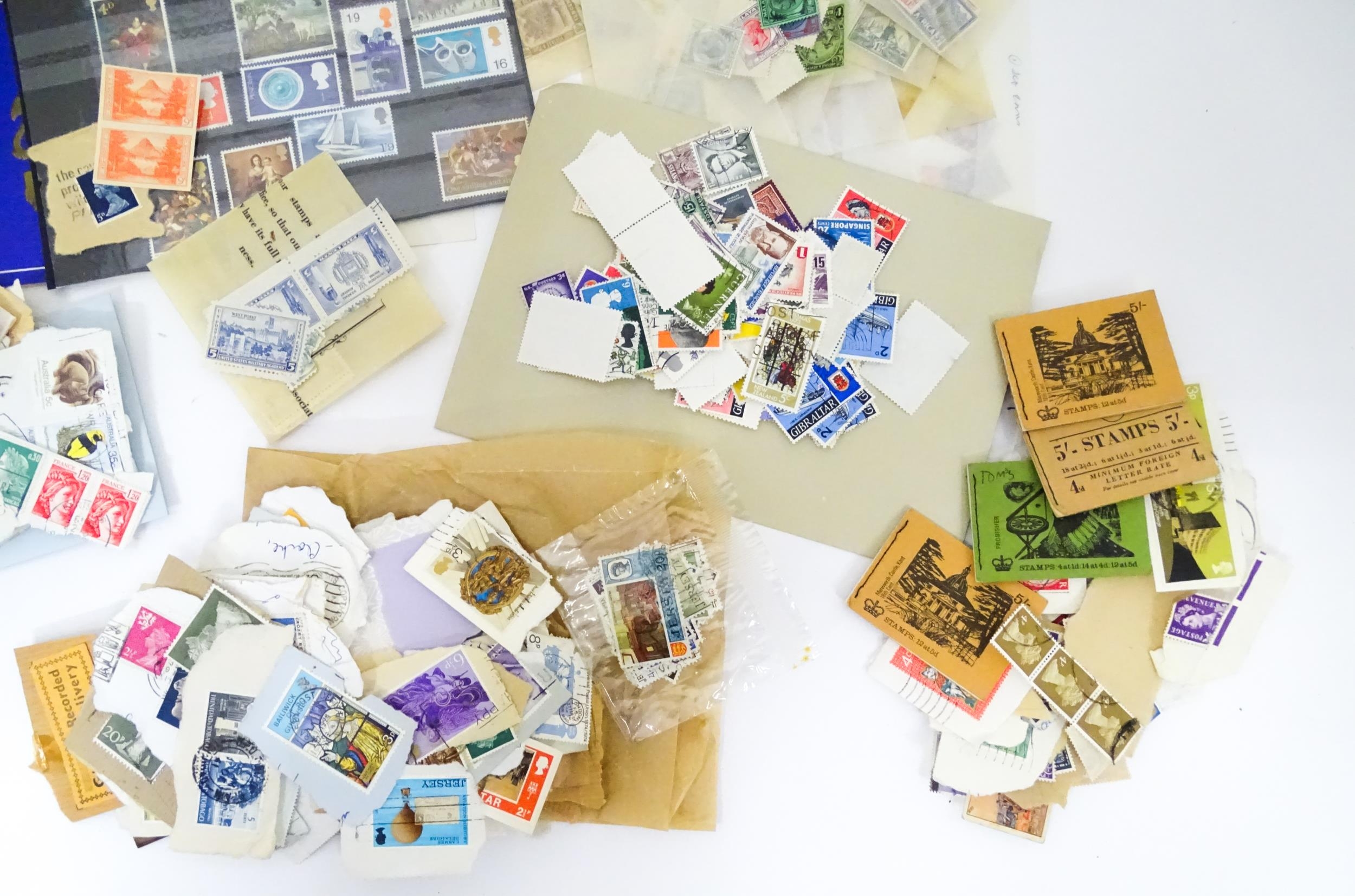Stamps : A quantity of assorted Great Britain and Worldwide loose stamps. Together with two small stamp albums, etc. Mainly 20thC examples.