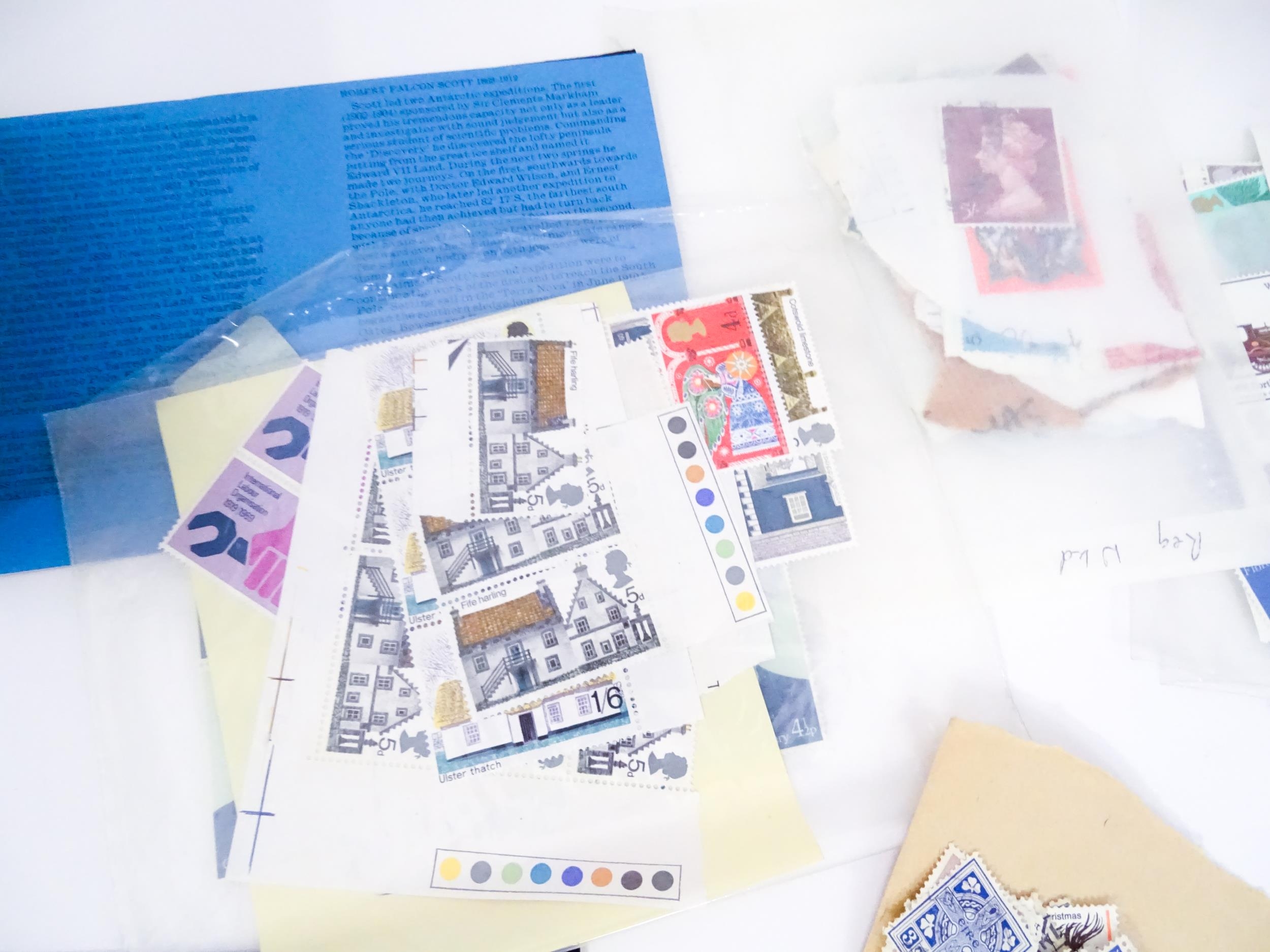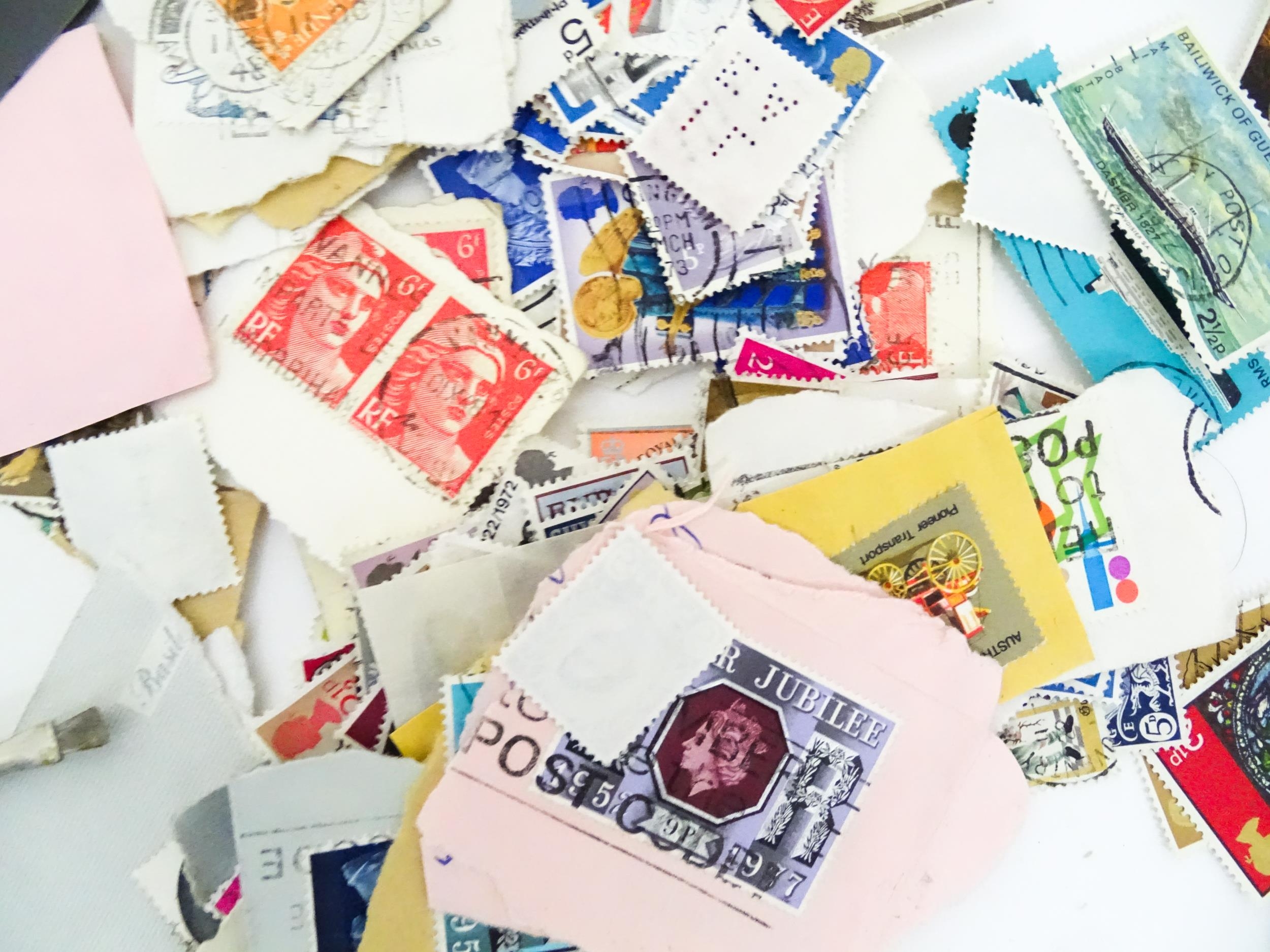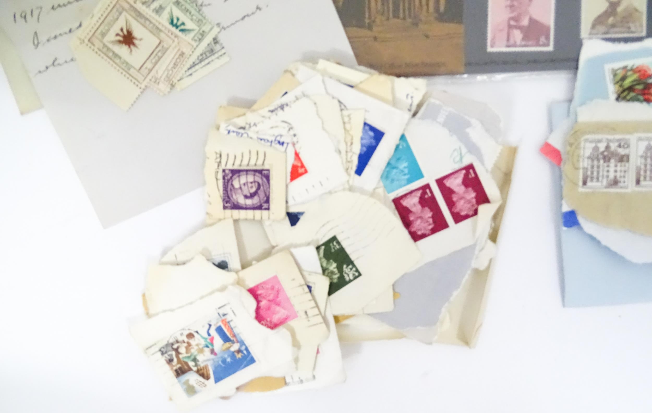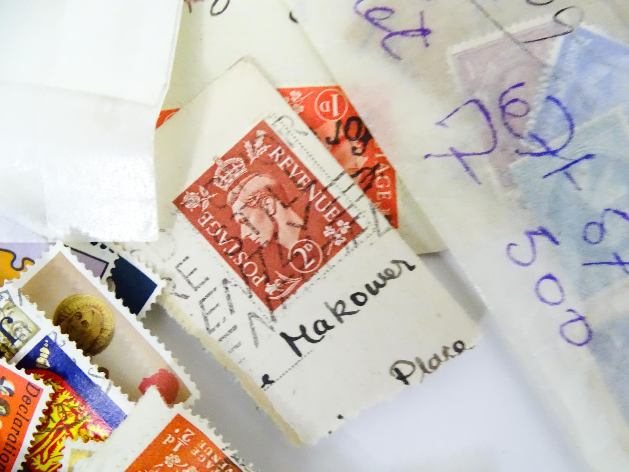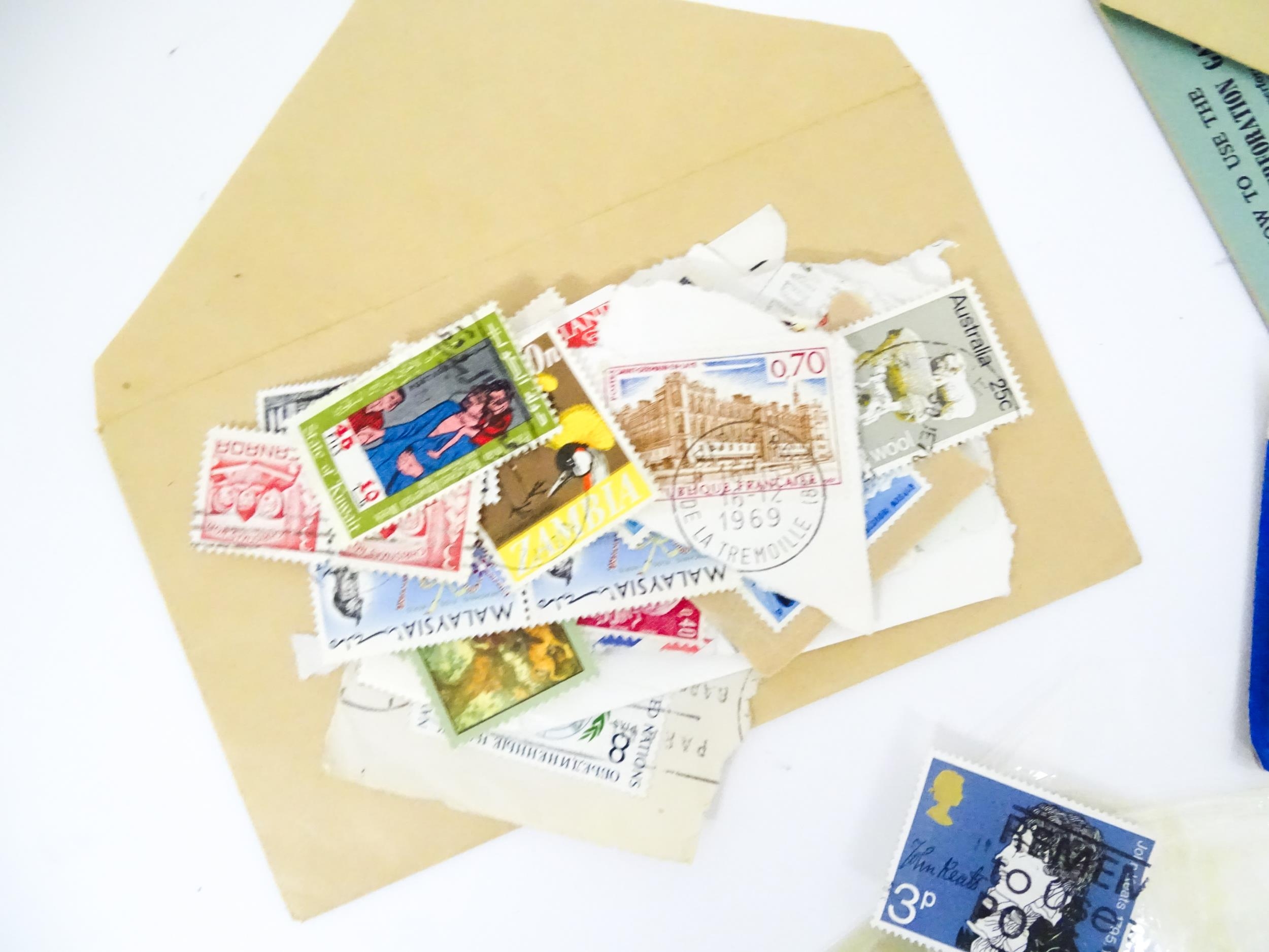 Stamps : A quantity of assorted Great Britain and Worldwide loose stamps. Together with two small stamp albums, etc. Mainly 20thC examples.