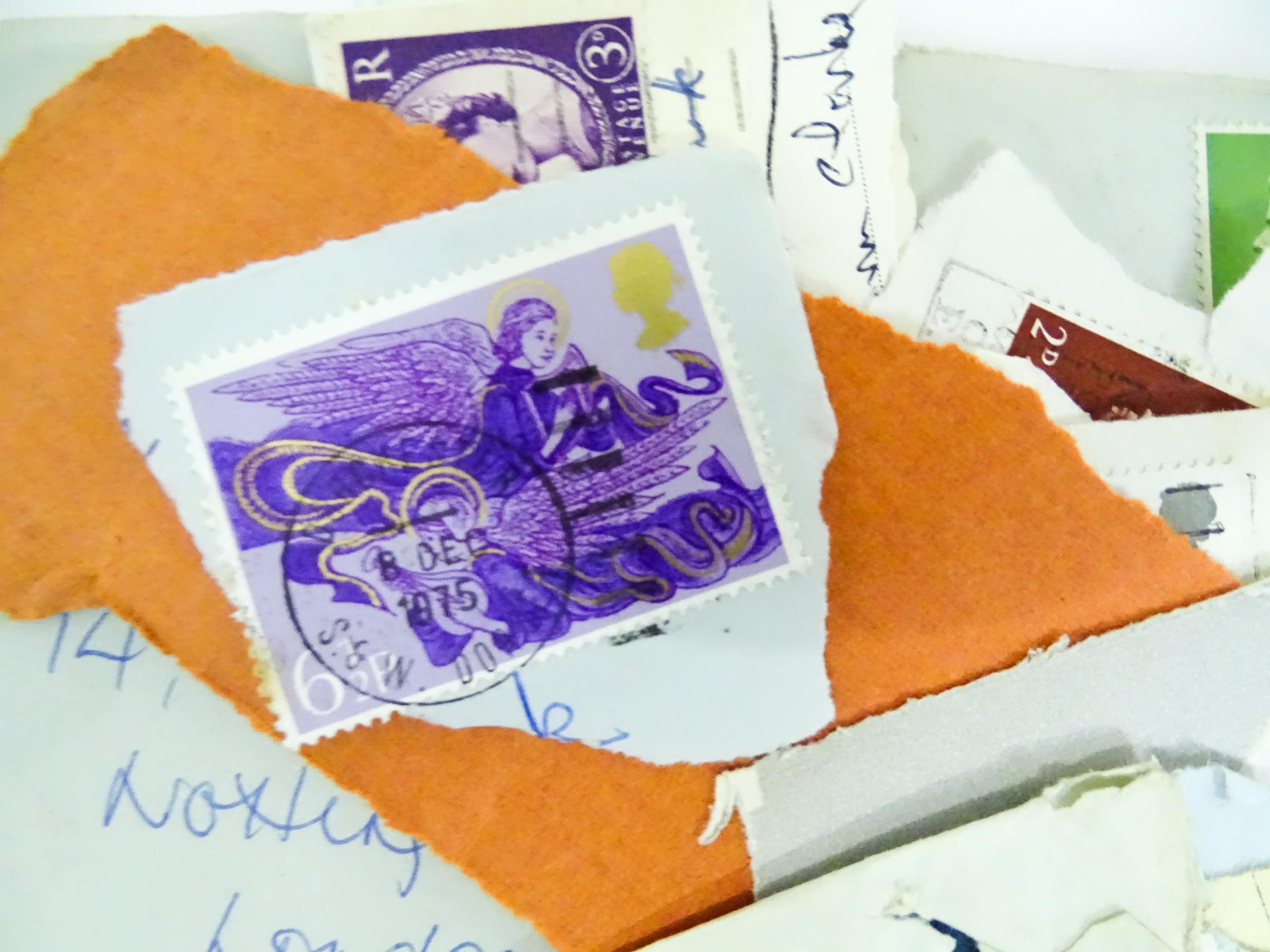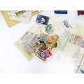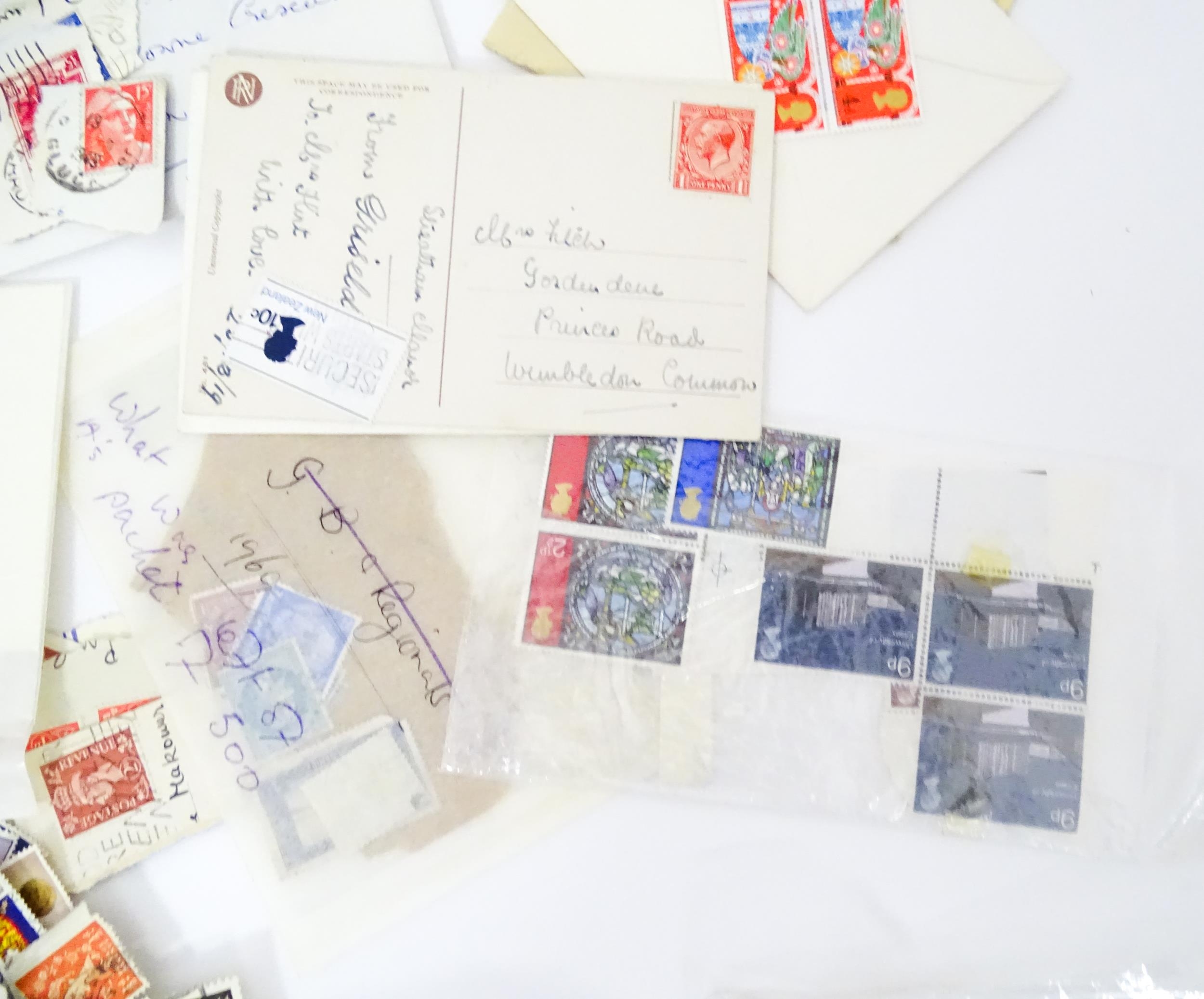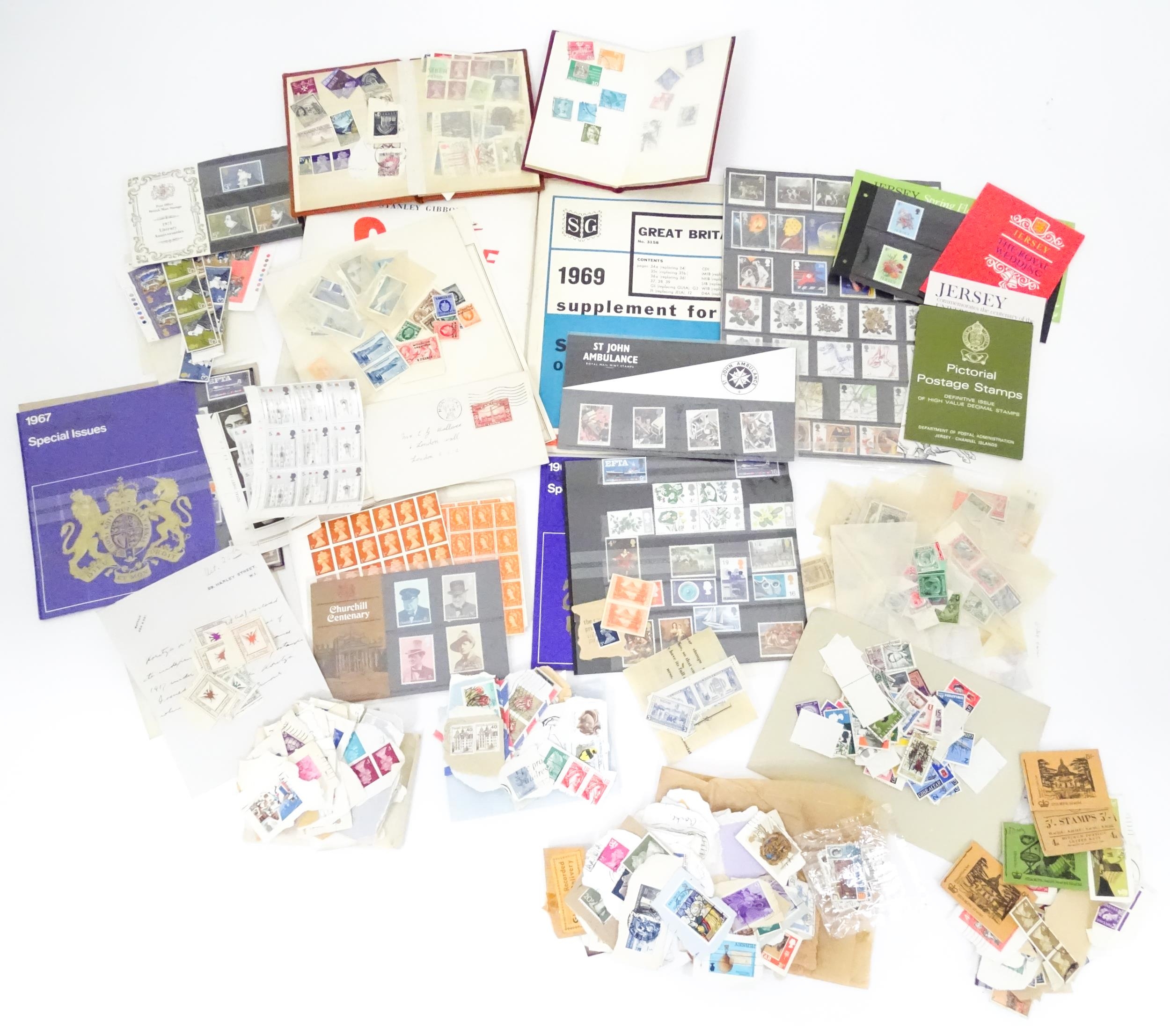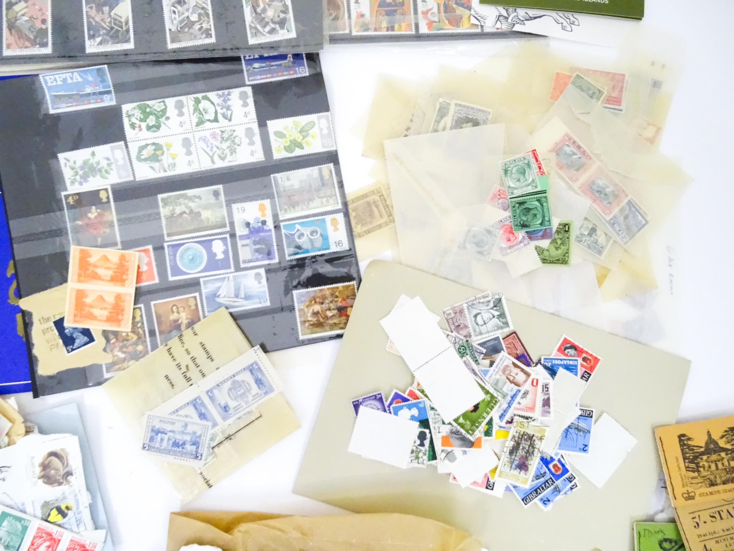 Stamps : A quantity of assorted Great Britain and Worldwide loose stamps. Together with two small stamp albums, etc. Mainly 20thC examples.