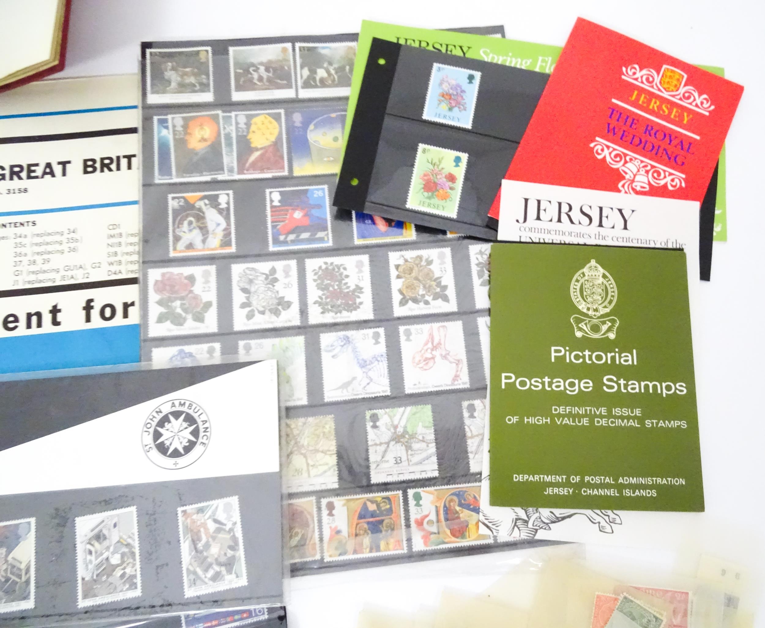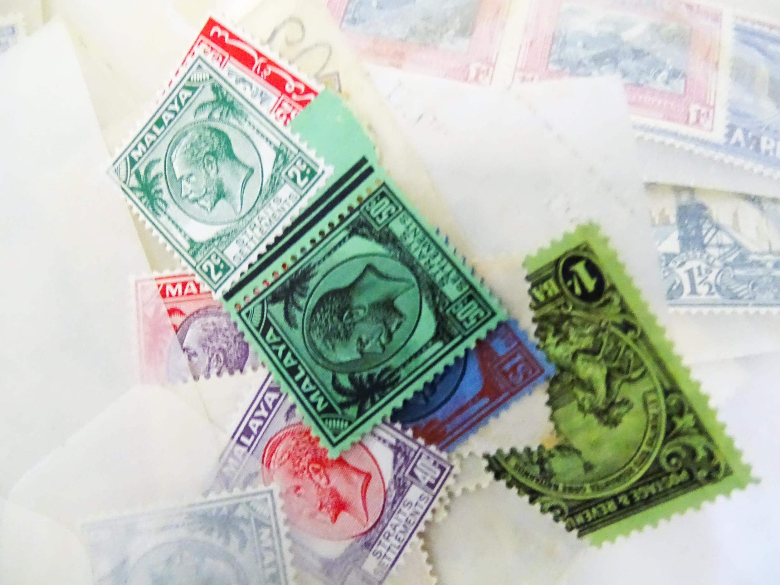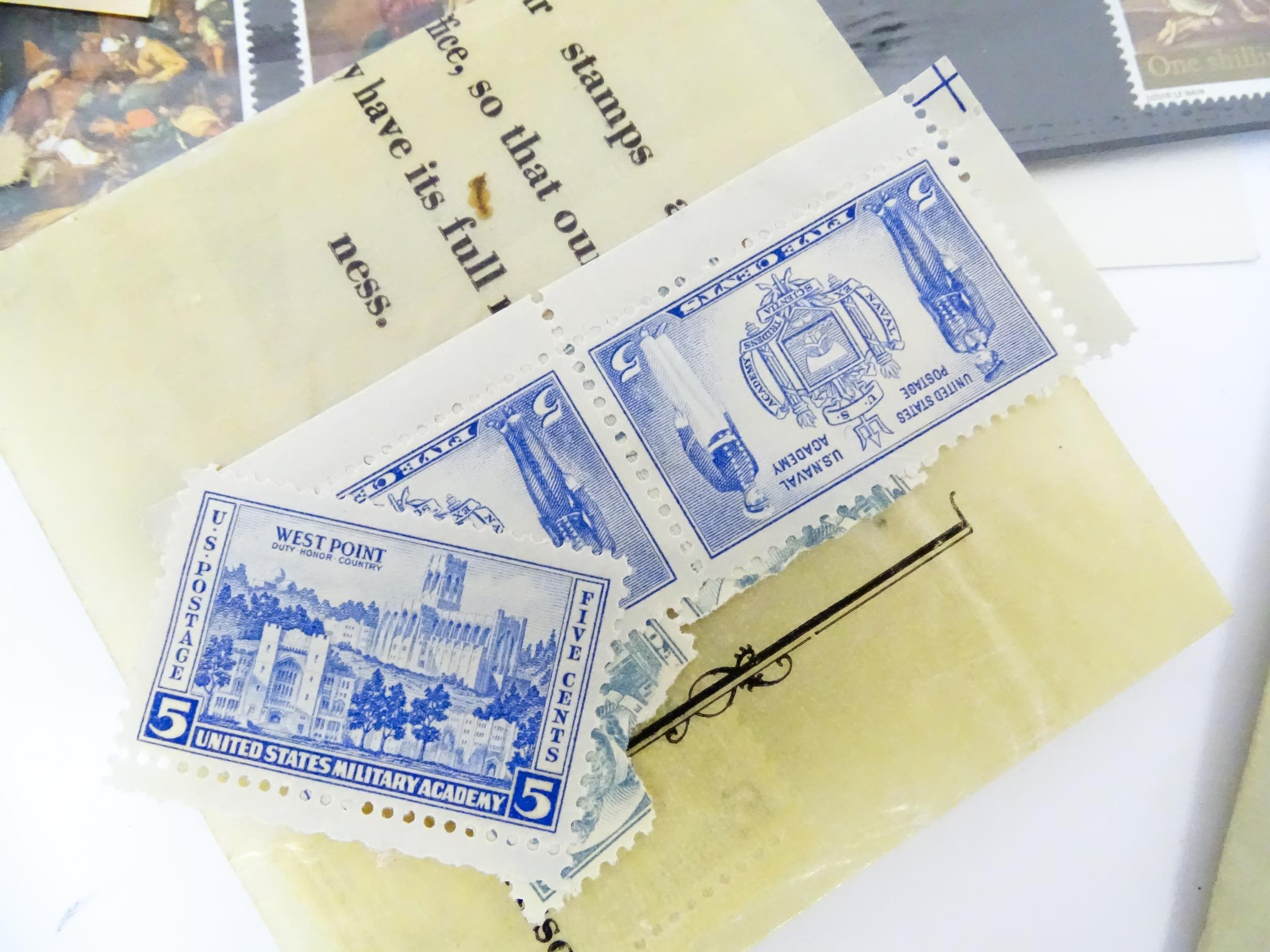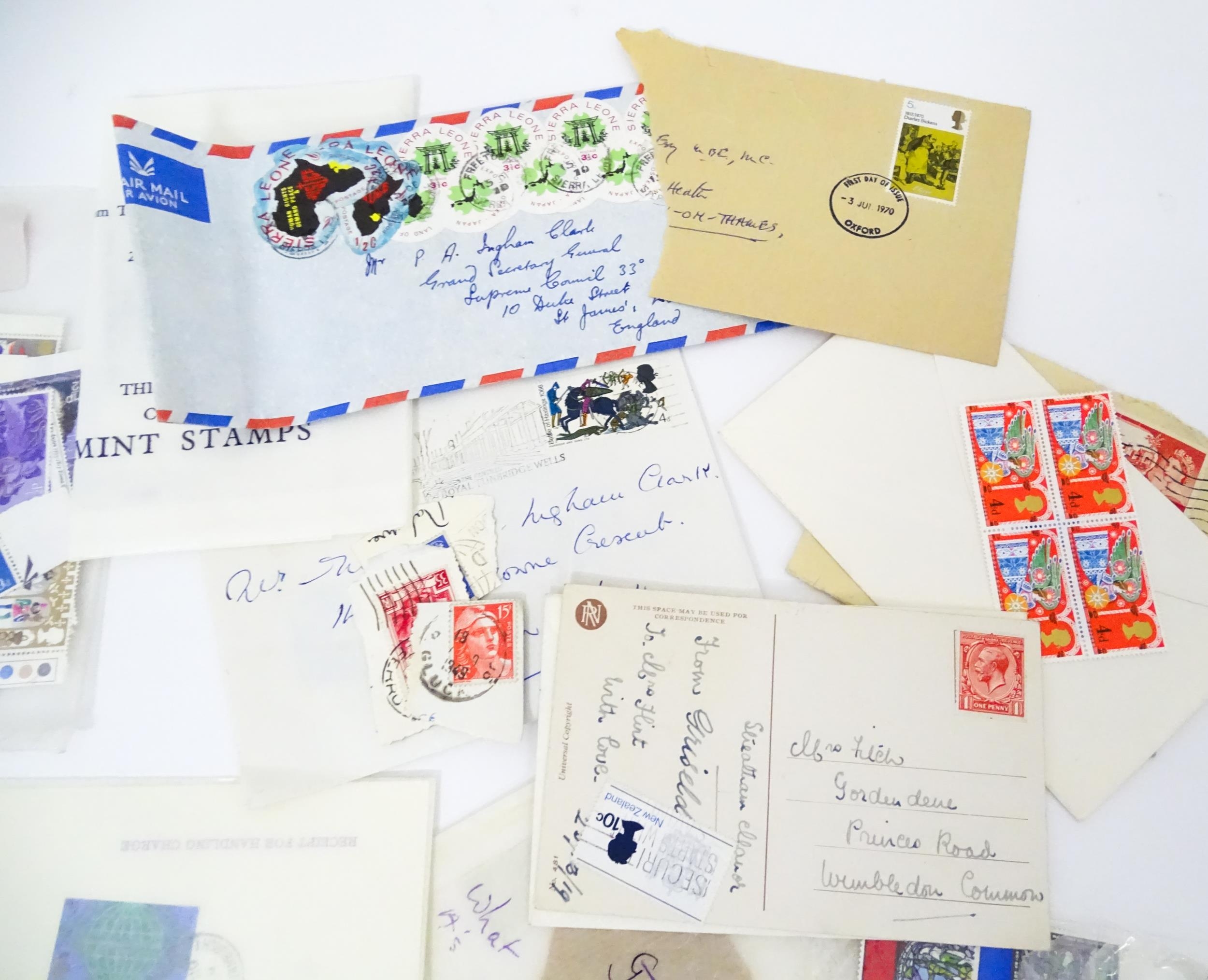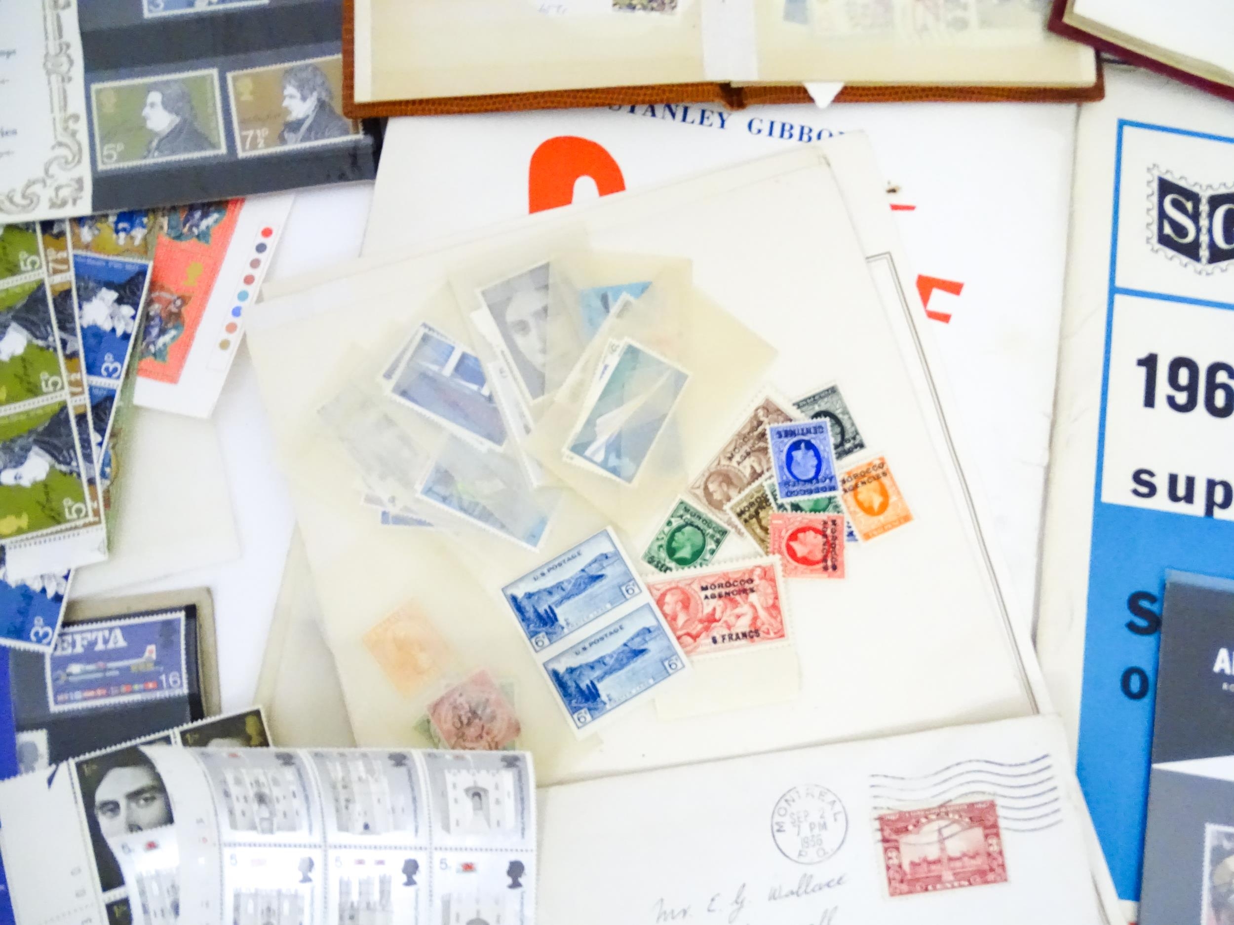 Stamps : A quantity of assorted Great Britain and Worldwide loose stamps. Together with two small stamp albums, etc. Mainly 20thC examples.