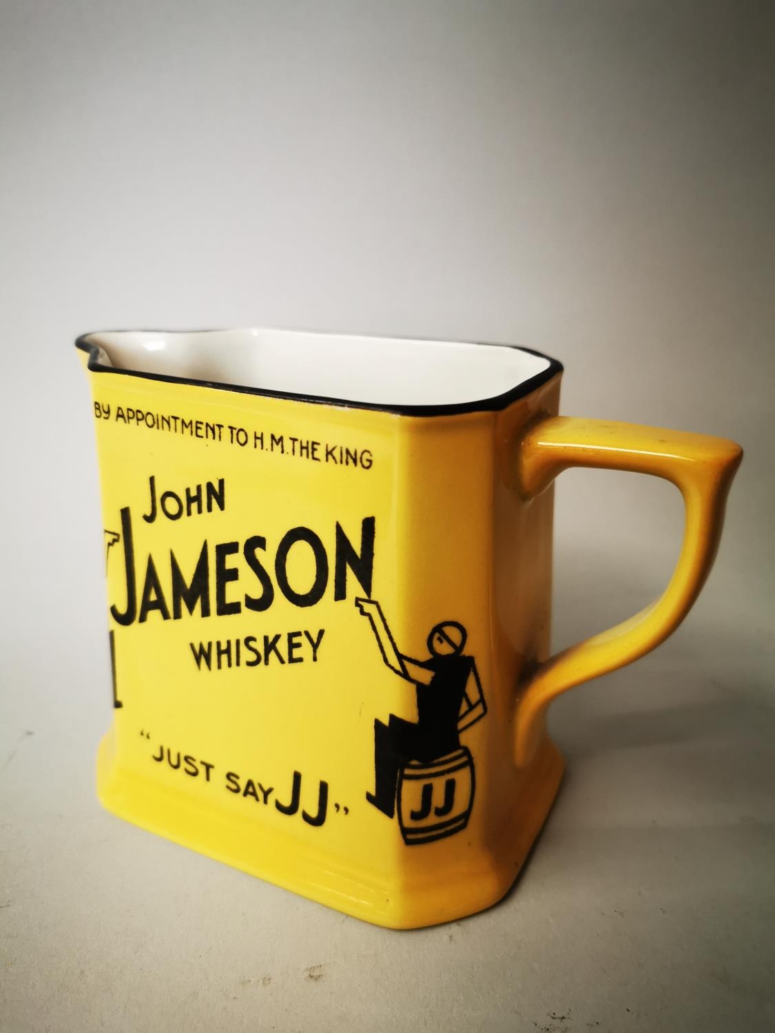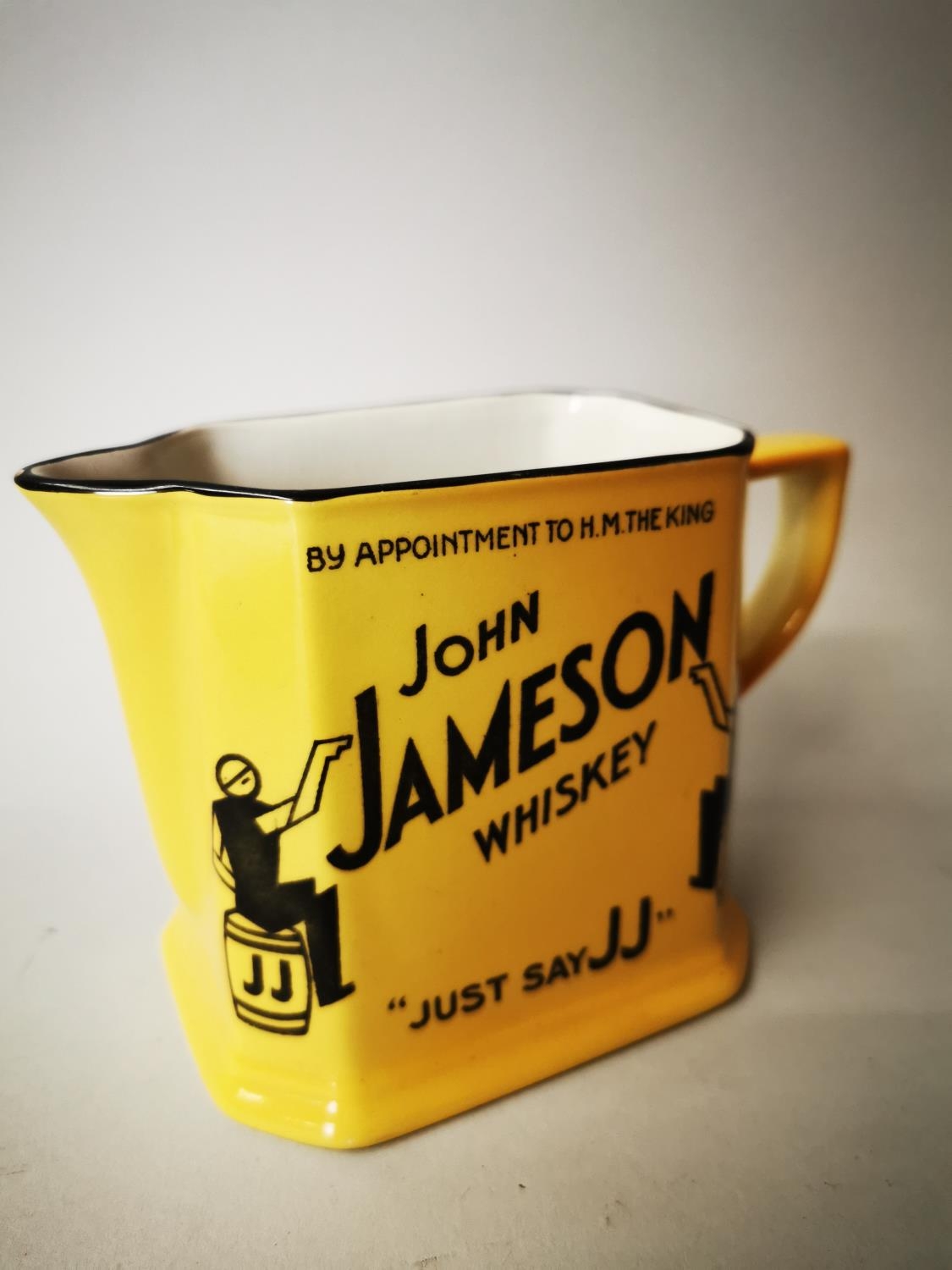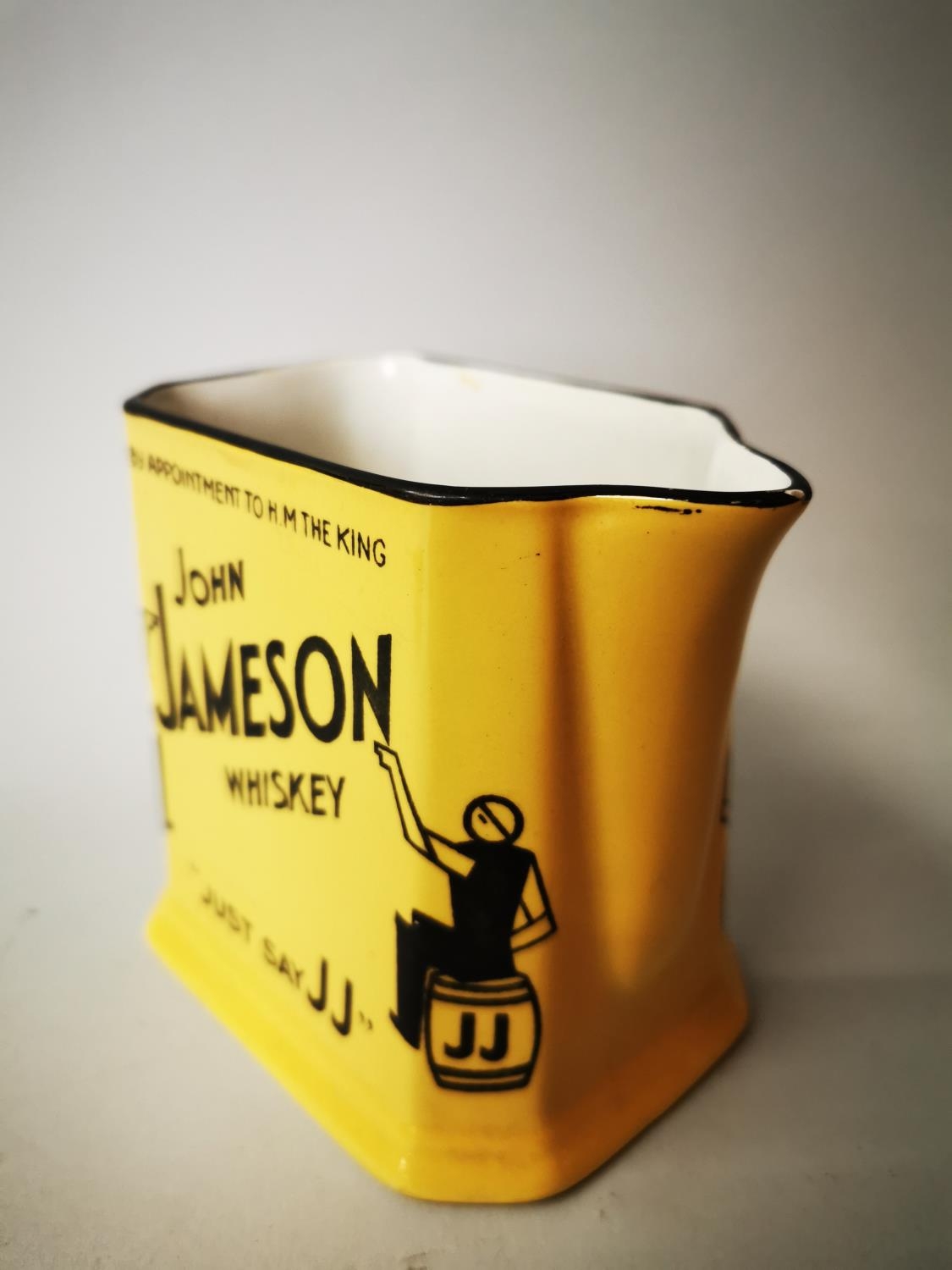 Extremely rare John Jameson Irish Whiskey ceramic stick man advertising water jug {10 cm H x 14 cm W x 8 cm D}.