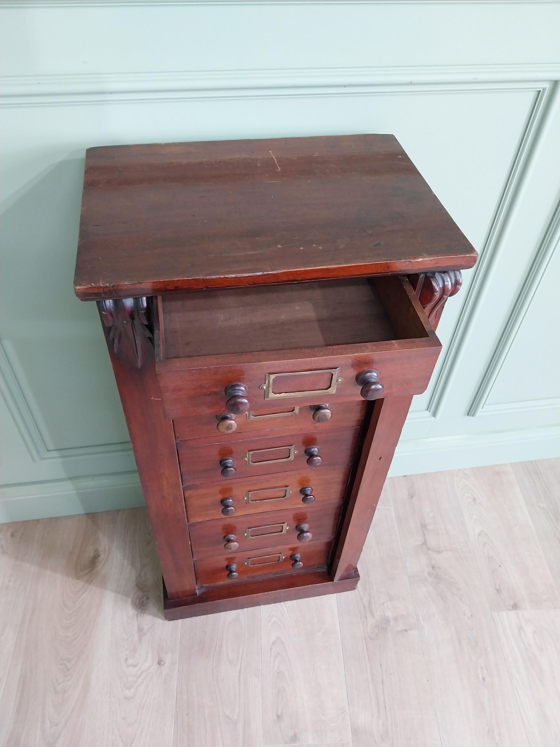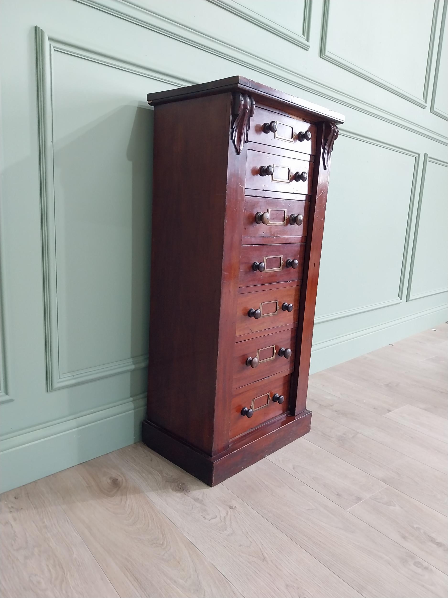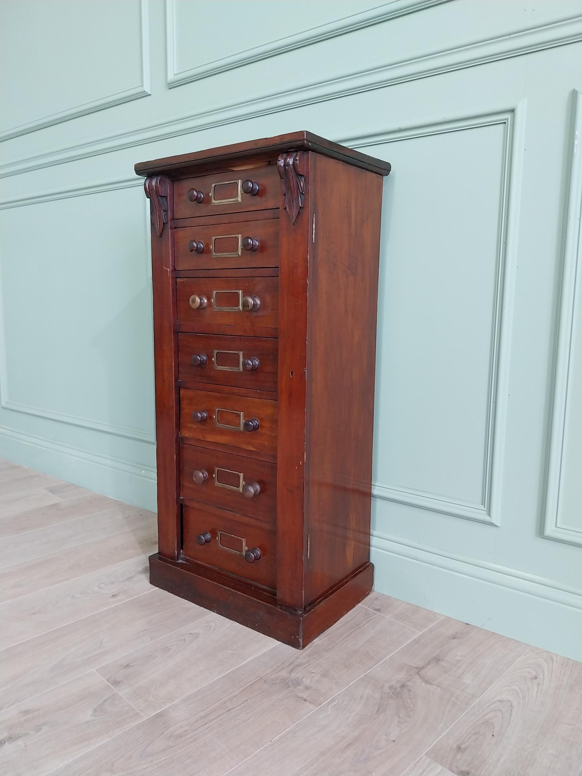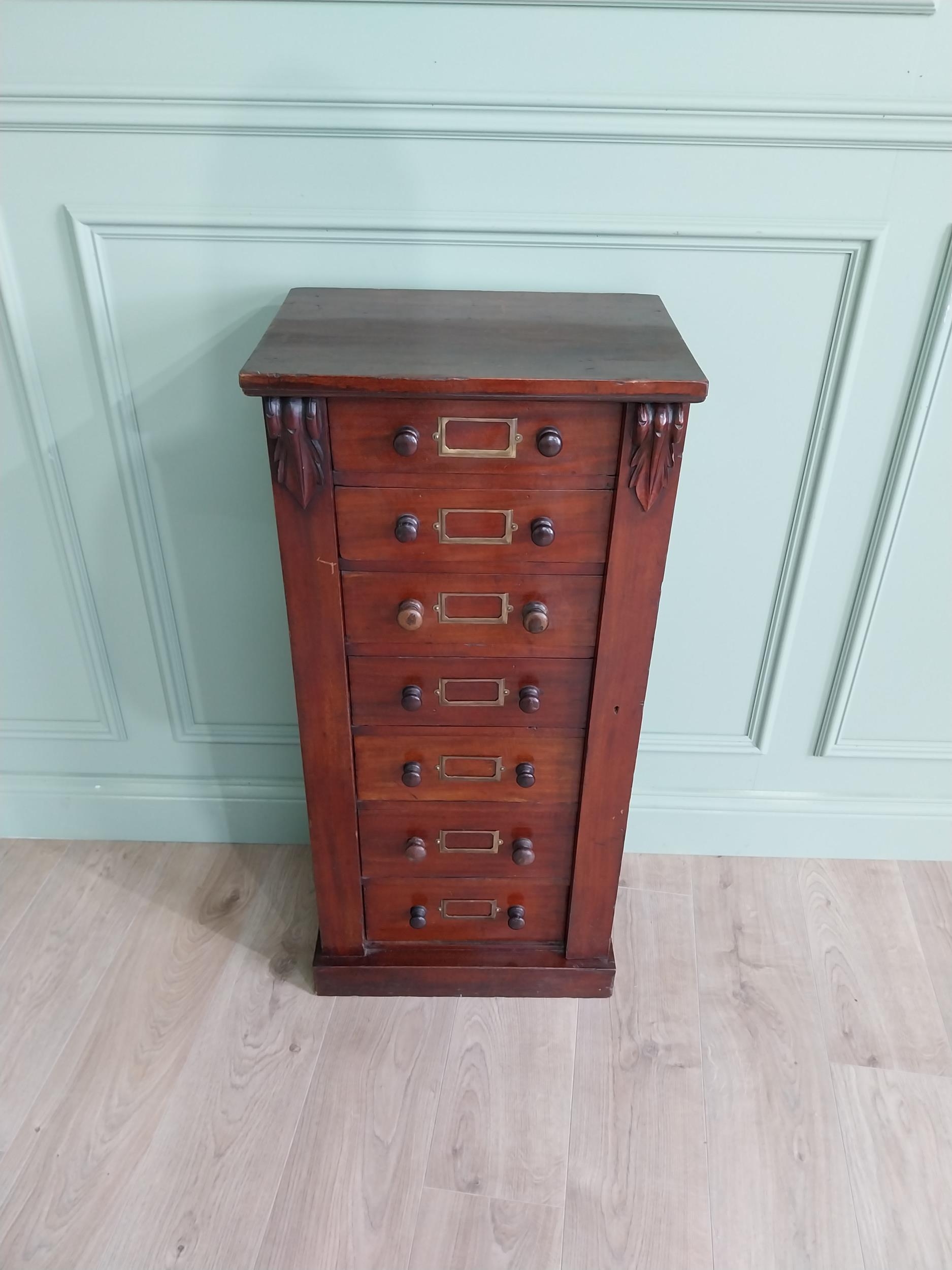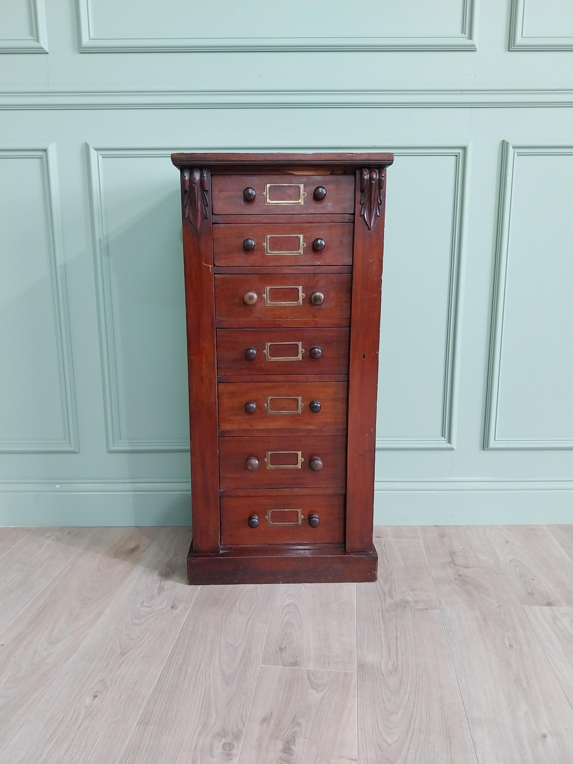 19th C. mahogany Wellington chest of drawers {100 cm H x 47 cm W x 33 cm D}.