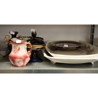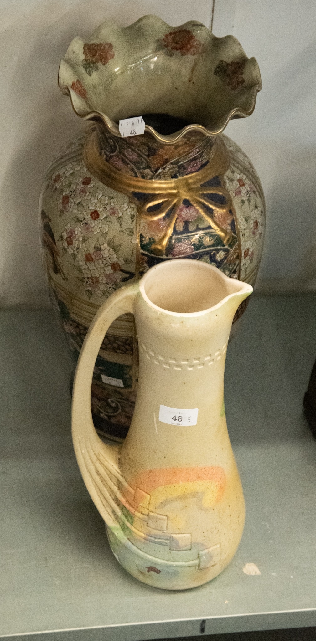 POST-WAR ORIENTAL REPRODUCTION CERAMIC VASE, 18" (45.5 cm) high, also a 1930's EARTHENWARE TALL SLENDER JUG, impressed 'WILHEIM ENGLAND' (2)