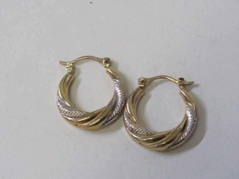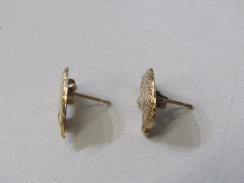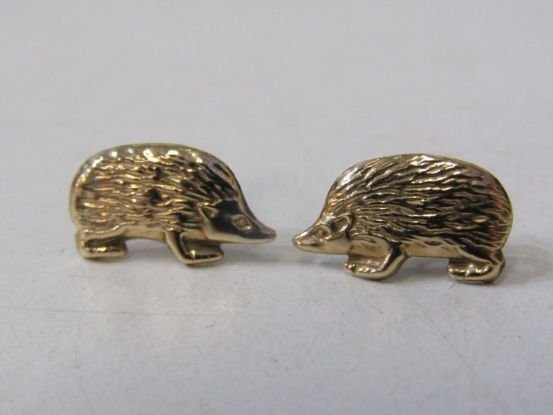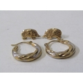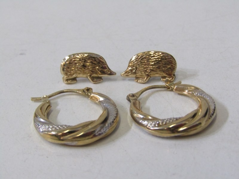 GOLD EARRINGS, pair of 9ct yellow gold creole style earrings, together with a pair of hedgehog design stud earrings (no butterflies) 2 grams