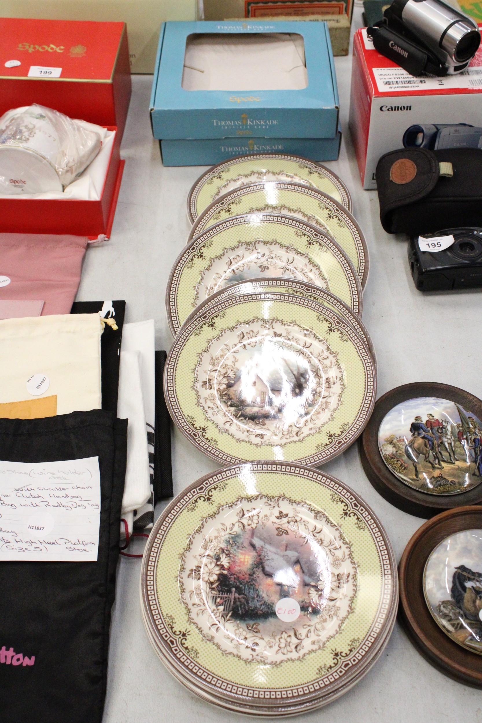 TWO BOXED THOMAS KINKADE BY SPODE 8" PLATES IN THE 'COTTAGE ACCENTS' RANGE. FOUR PLATES IN EACH BOX