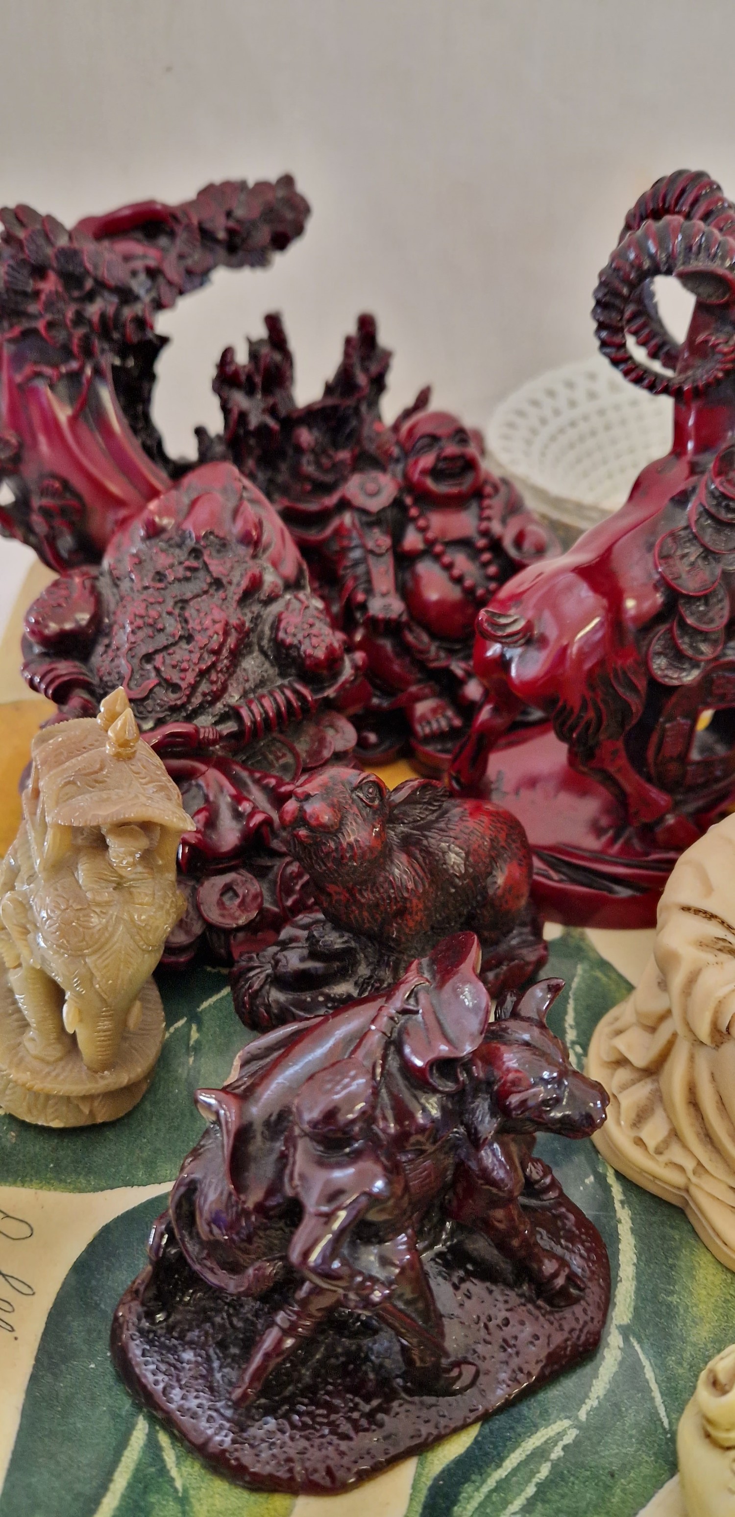 Qty of figurines, predominantly resin Buddha figures, Goebel's etc