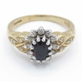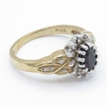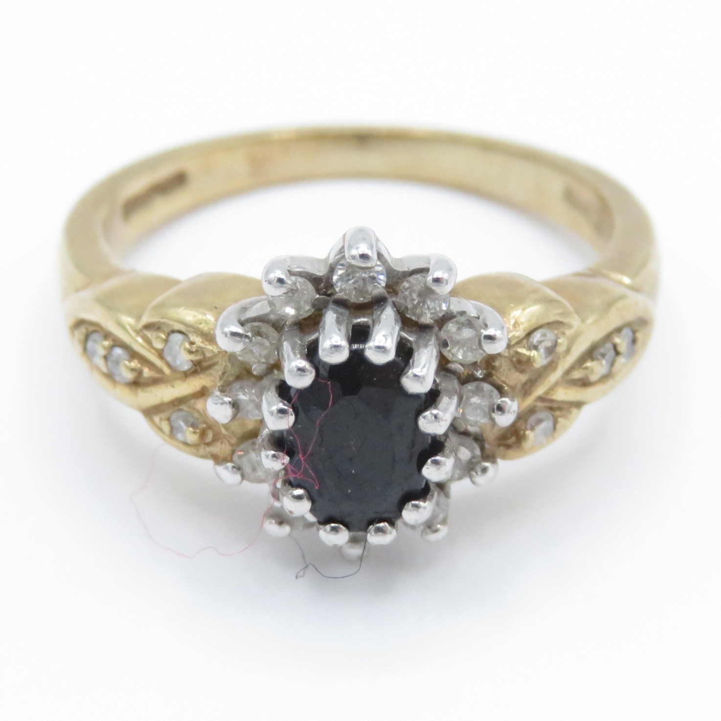 9ct Gold Diamond and Sapphire Halo Ring (3.7g) Size L