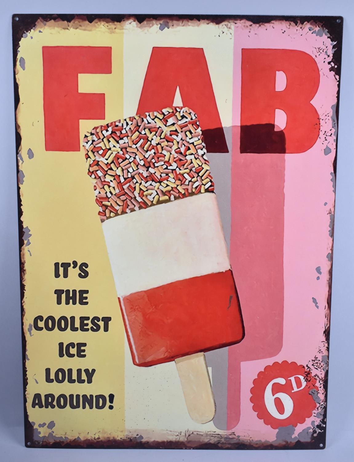 A Reproduction Enamel Effect Sign, Printed on Tin For "Fab" Ice Lolly, 50x70cms