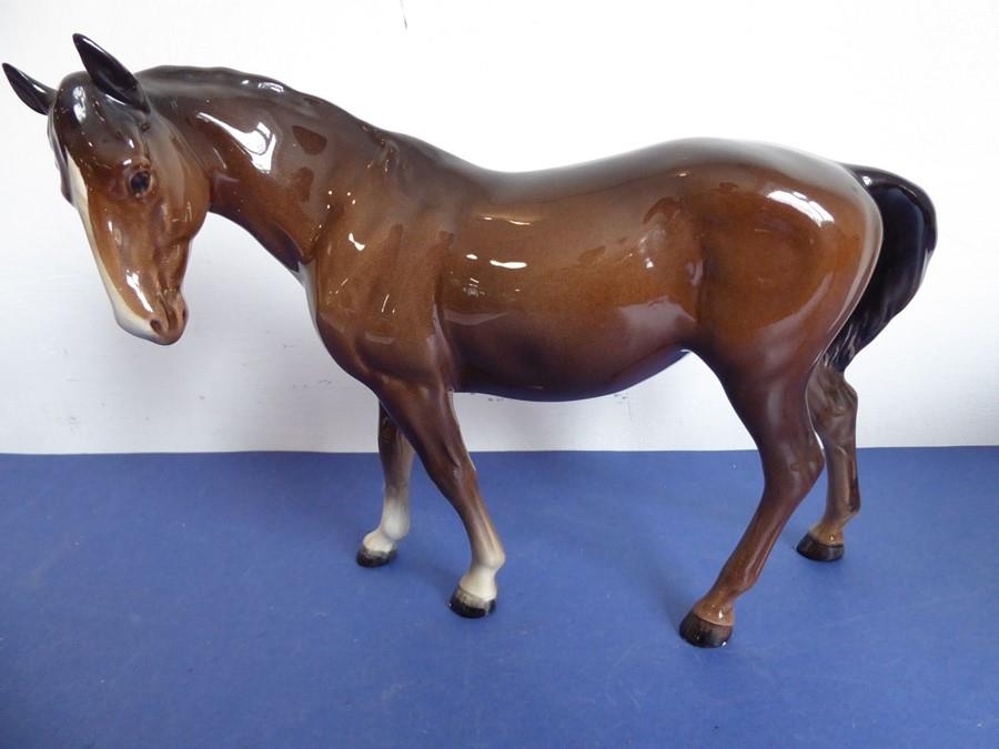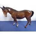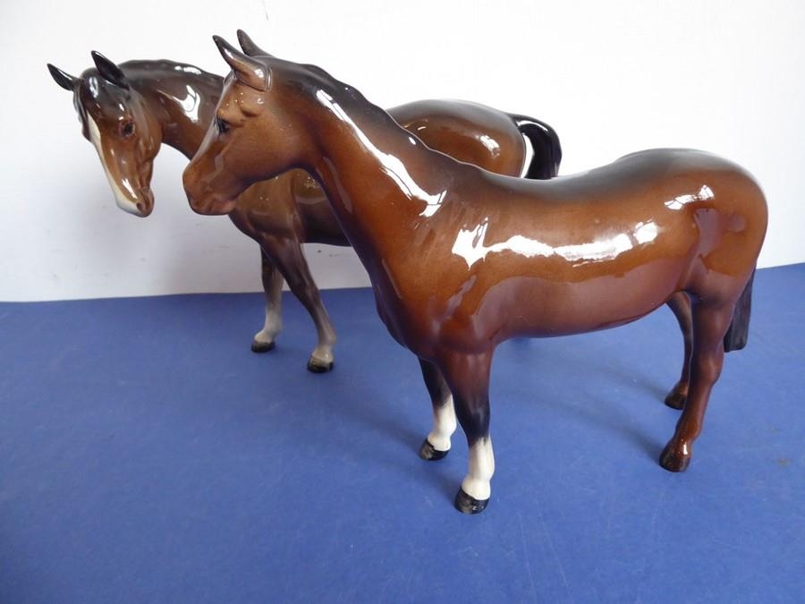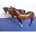 Two Beswick horses; brown glaze, one standing four square the other walking and with head turned to the left (both 17cm high)