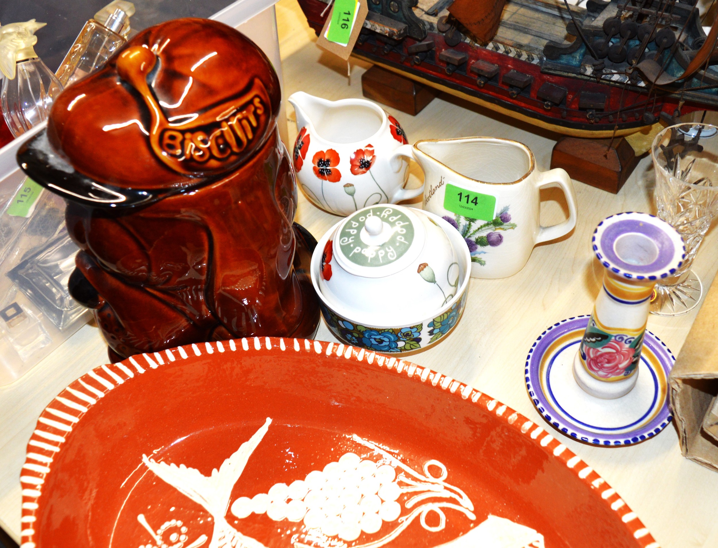 China-Ware: A Large Fish Serving Platter, Ridgeway "Amanda" Bowl, Biscuit Barrel (Small Crack), Boxed Web Crystal Vase etc