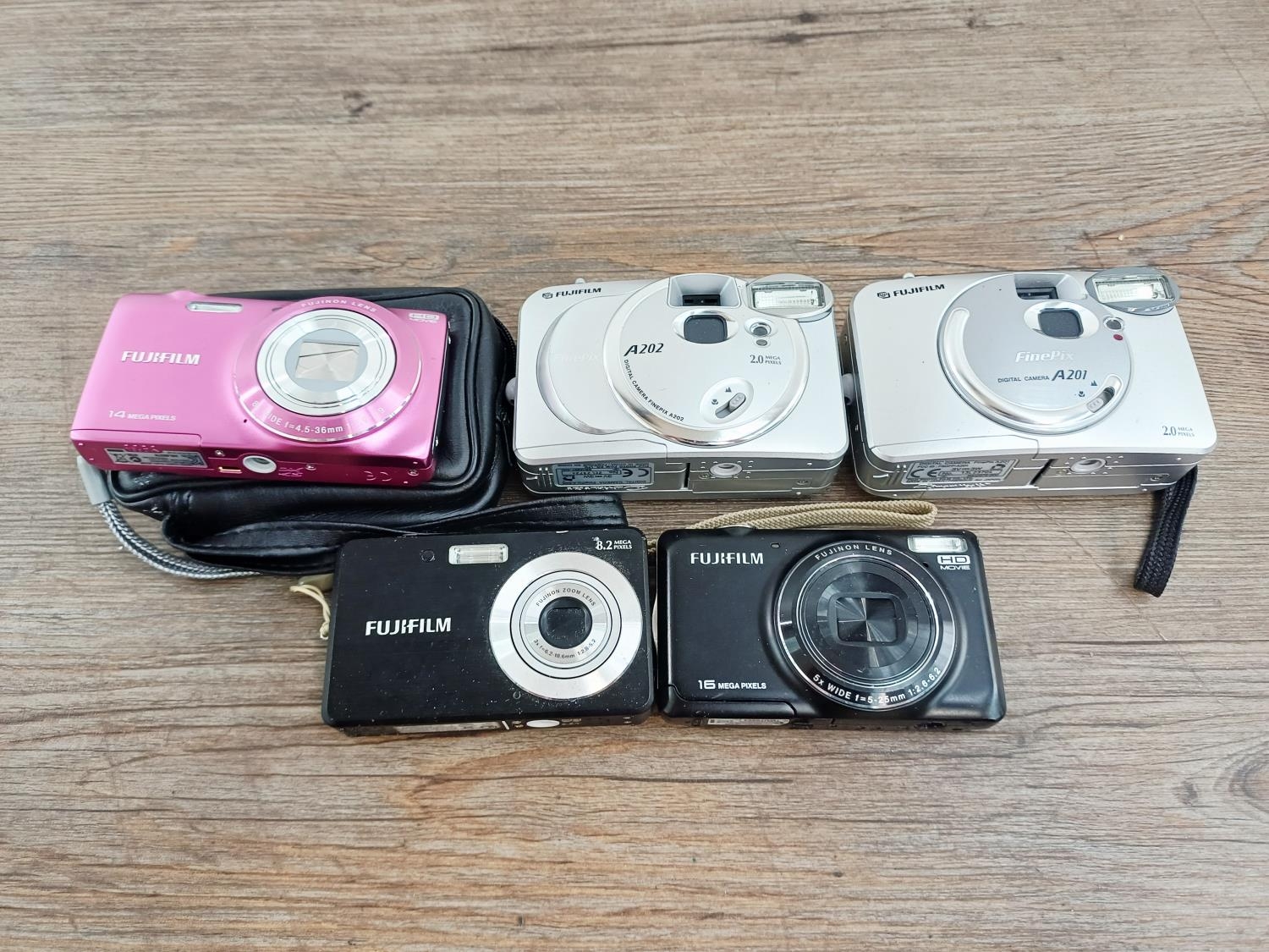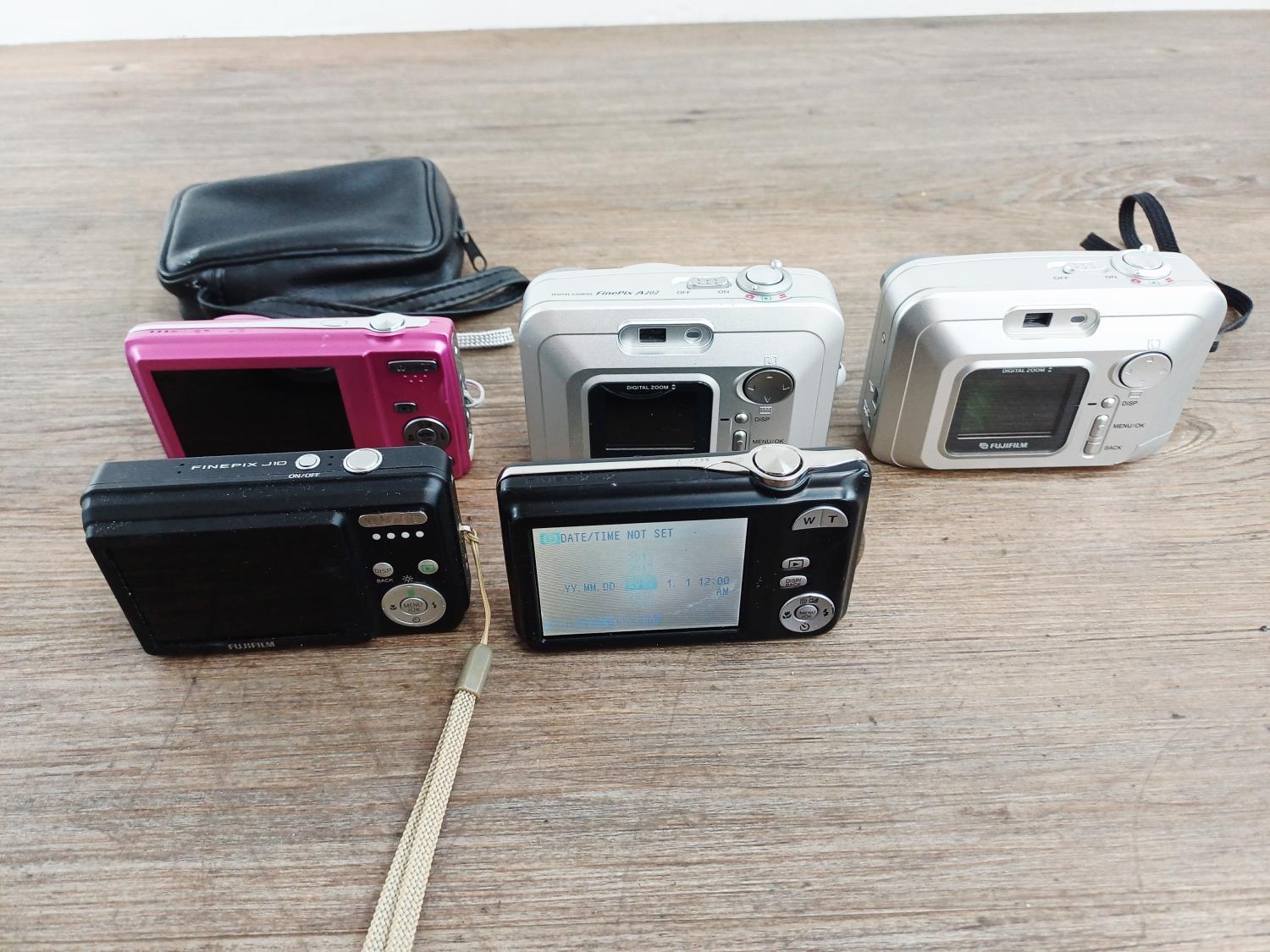 Five Fujifilm FinePix compact digital cameras, JX420 16mp, JZ100 14mp, J10 8.2mp, A202 2mp and A201 2mp
