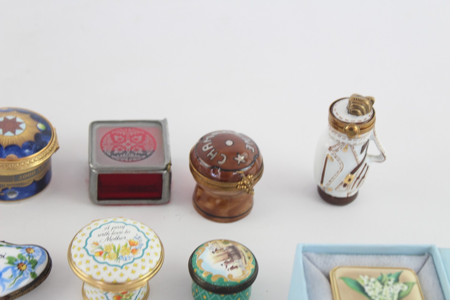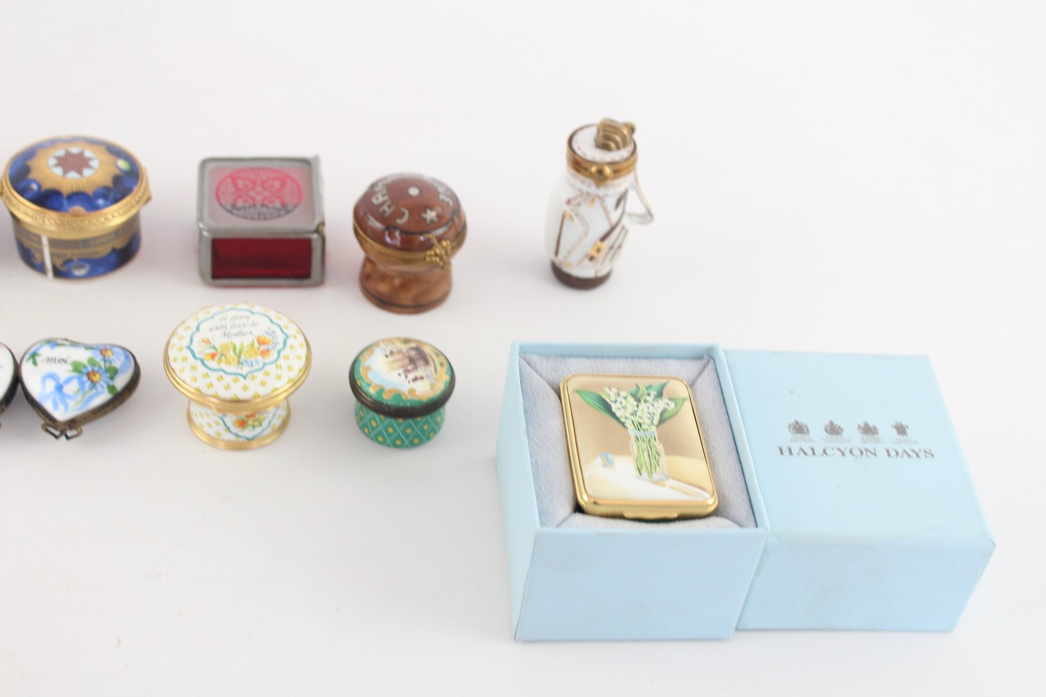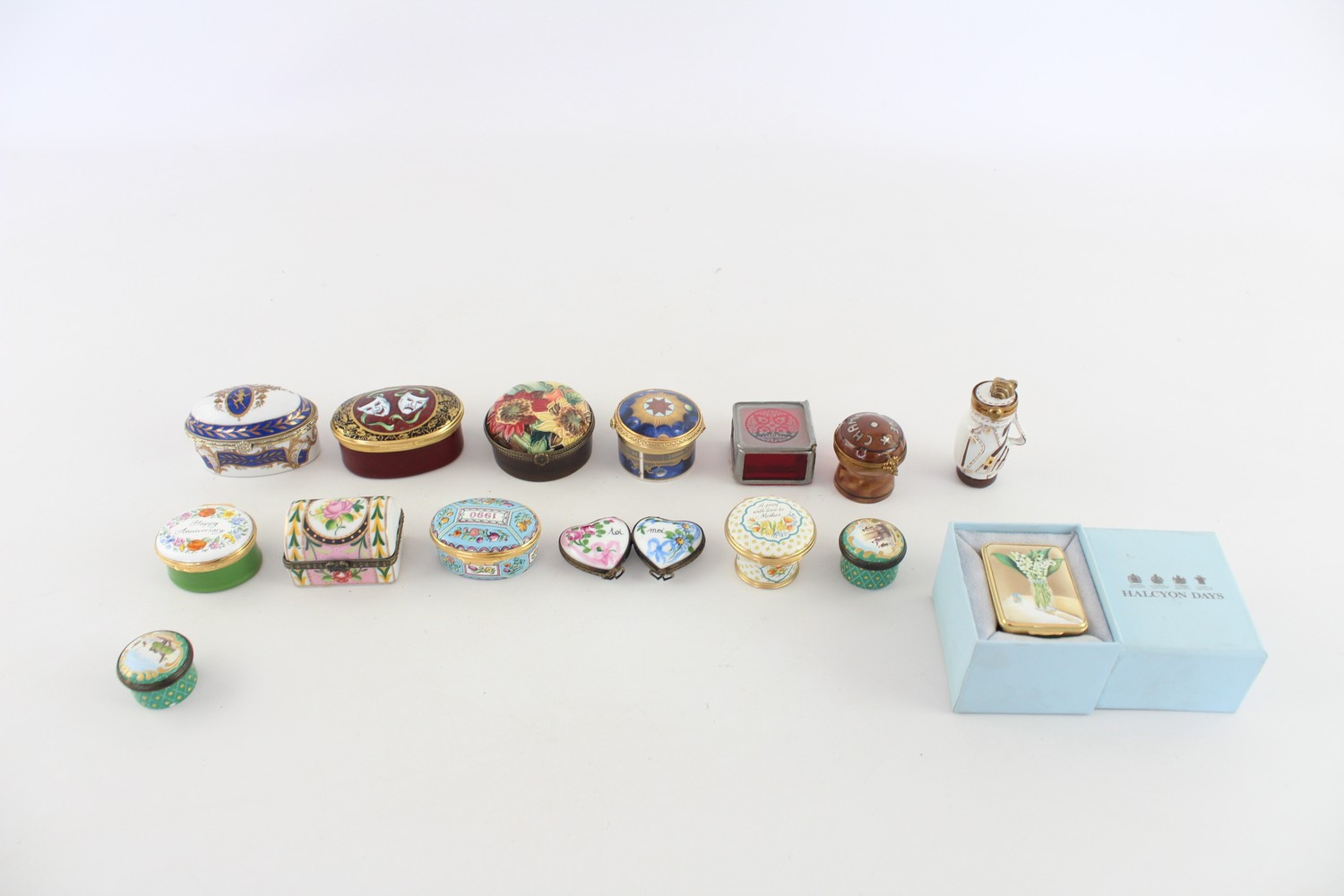15 x Assorted Porcelain PILL / TRINKET Inc Enamel, Halcyon Days, Millennium Etc