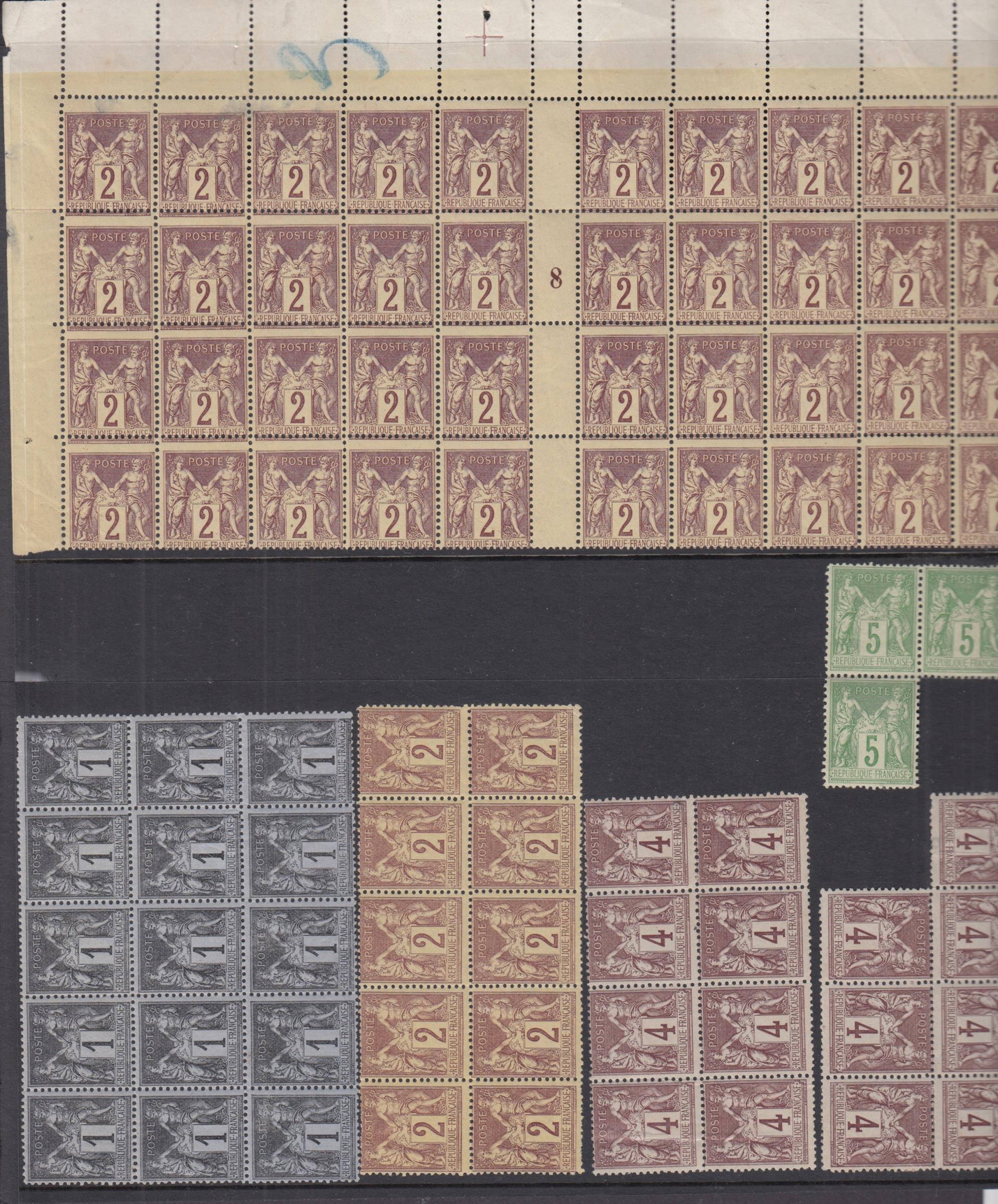 1877 ‘Peace and Commerce’ issues in large multiples, mostly u/m, a few with faults, comprising 1c x64, 2c x50, 3c x29 and 4c x15. Also 1932 90c with ‘F.M’ ovpt in block of 50, Cat £2000+