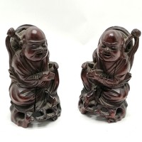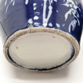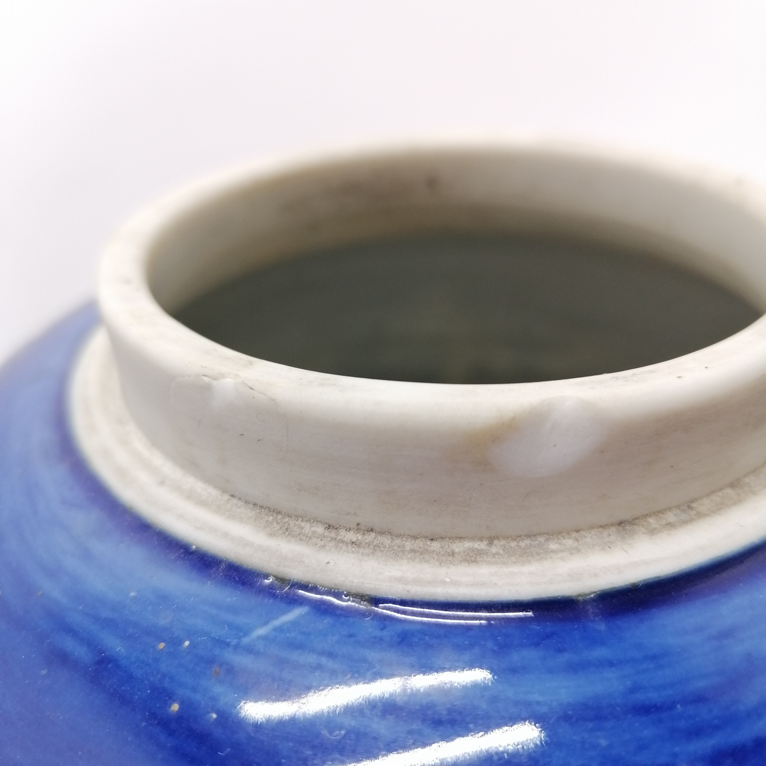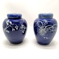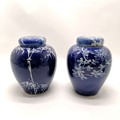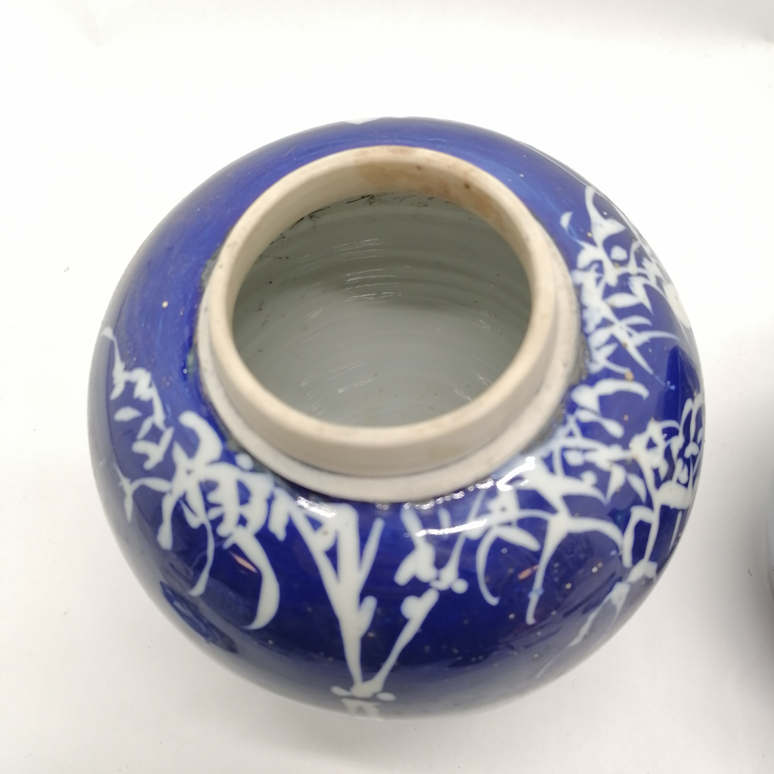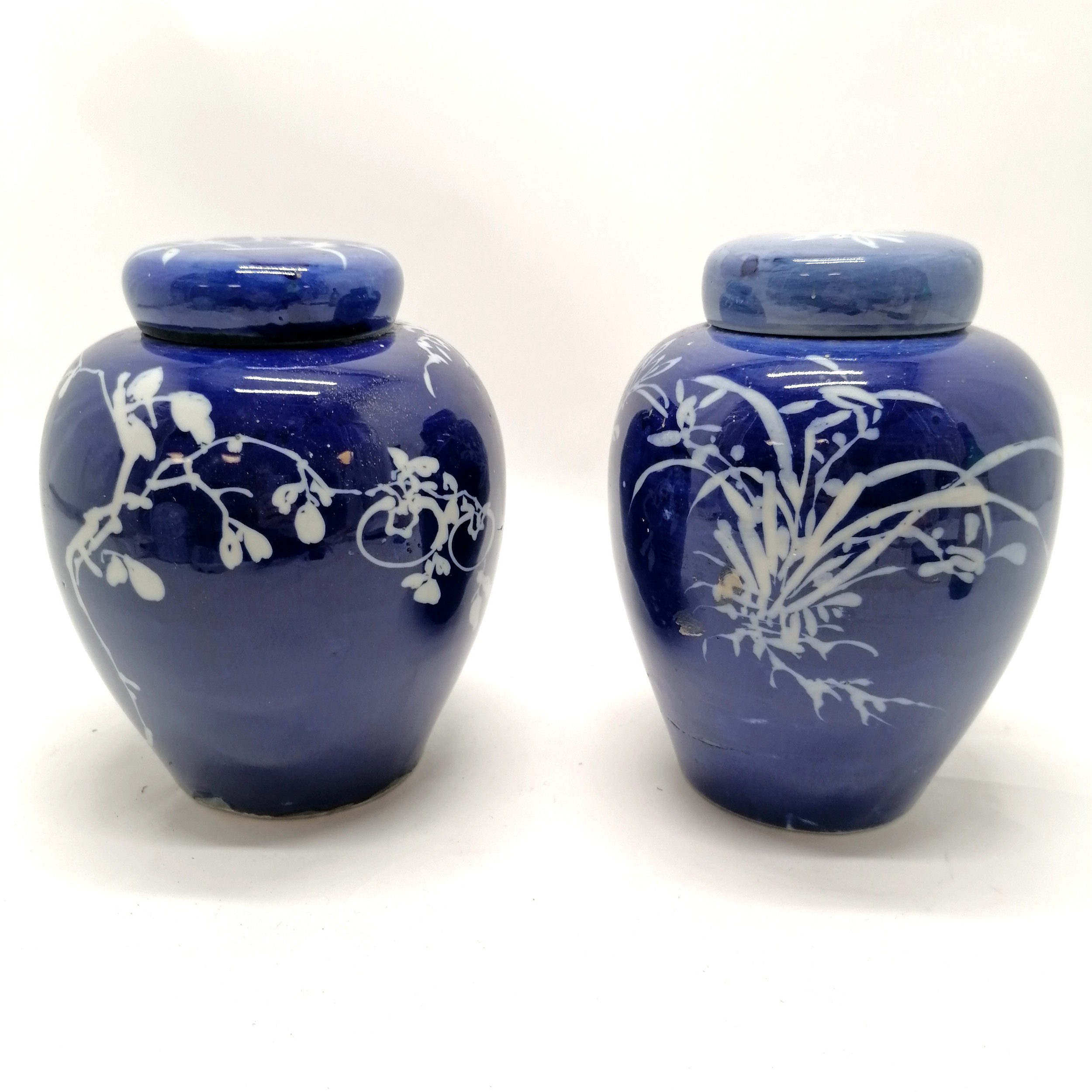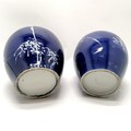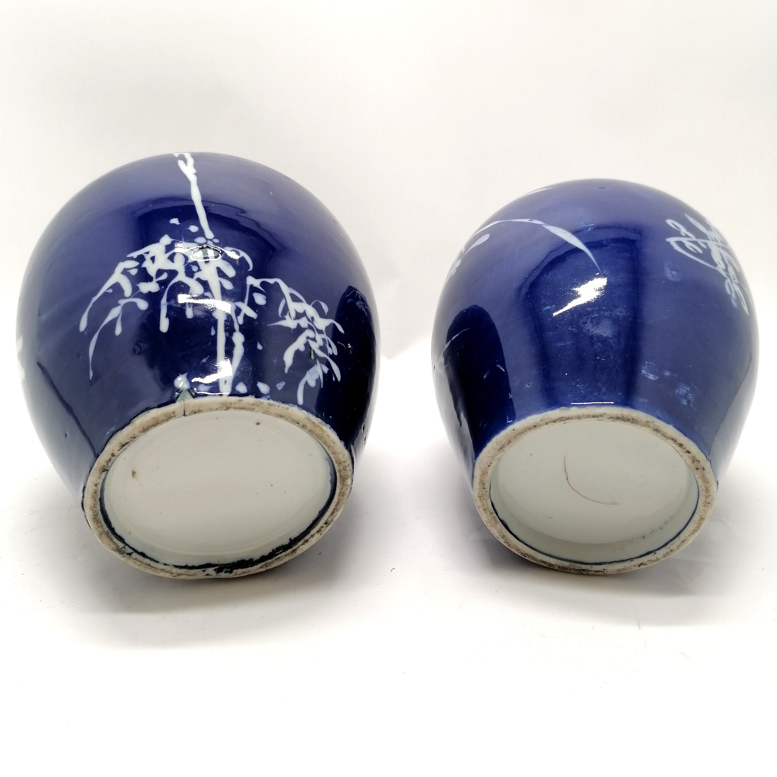 Pair of antique Oriental blue and white ginger jars with inner lids (1 A/F) 21cm high - jars with no obvious damage