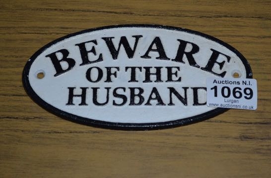 Cast Beware of the Husband Sign 7x3.5"