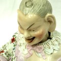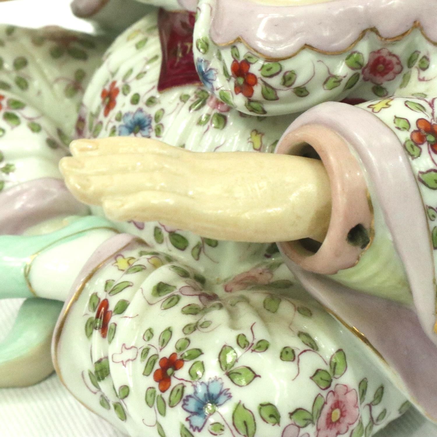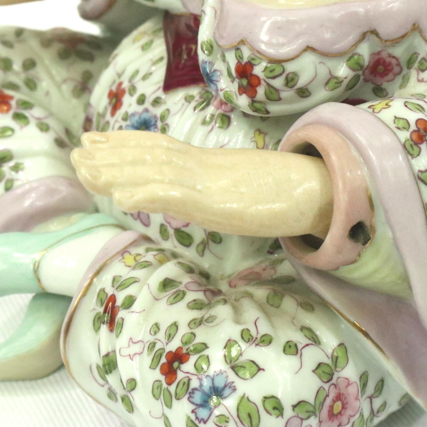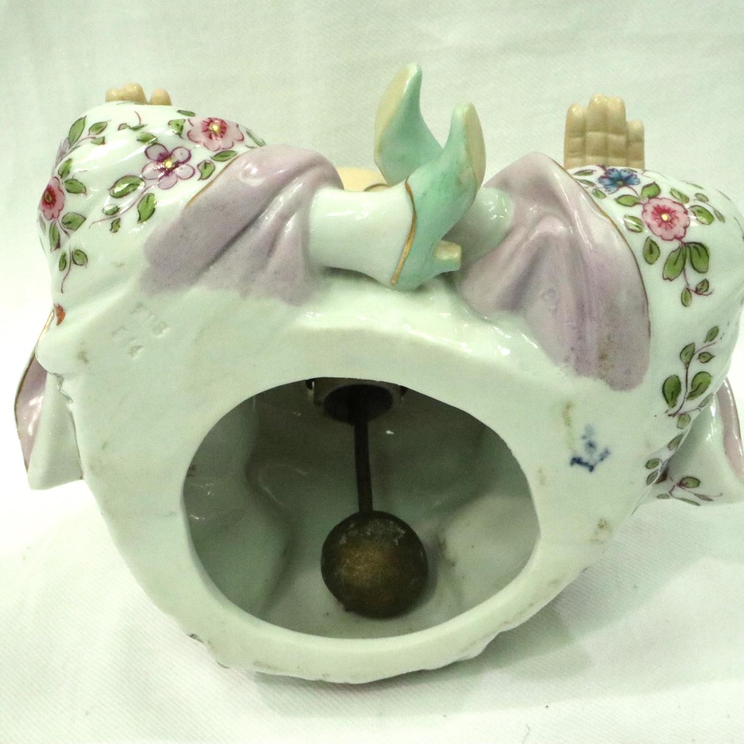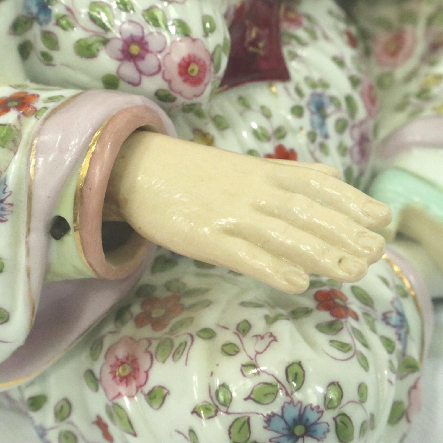 A late 19th Century German Ernst Bohne & Sohne porcelain nodding pagoda figure, with weighted nodding head with protruding tongue and waving hands, polychrome decorated with flowers with gilt highlights, H: 15 cm. Condition report: No damage with moving tongue hands and arms, the potter Bowie and Sons opened from 1850 so we would say around 1880. P&P Group 3 (£25+VAT for the first lot and £5+VAT for subsequent lots)