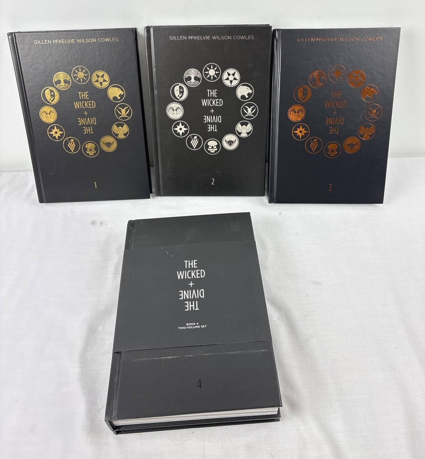 The Wicked + The Divine Deluxe Edition containing the complete run of the comic from Image Comics. Comprising: Year One (collects issues 1–11), Year Two (issues 12–22), Year Three (issues 23–33) and 2 book package Year Four (issues 34–45 and the six specials).
