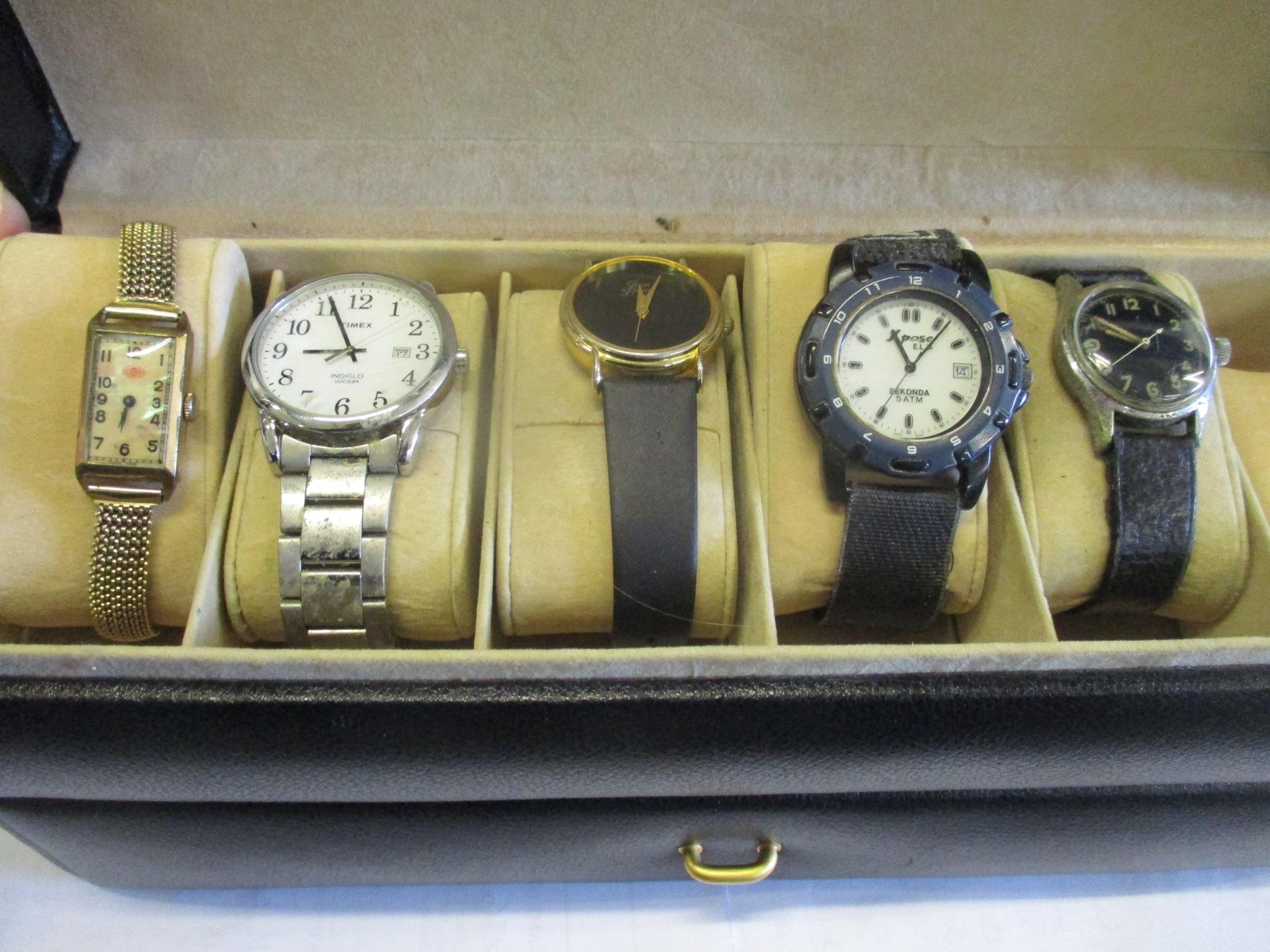 Mixed watches to include a Timex, Sekonda and others, together with a watch box