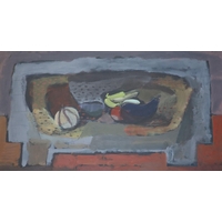 Overall in fair condition, ground paper has an even off white tone and undulates and so is not thought to be laid down, some slight acid or fox staining showing most notably near the lower right corner, housed in a plain white mount and bleached wood frame, comes for sale from a corporate collection