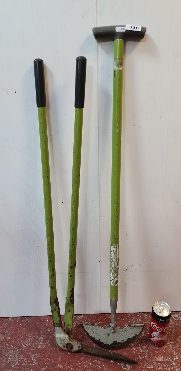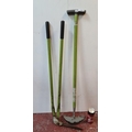 Two garden tools, an edge trimmer and a sod cutter