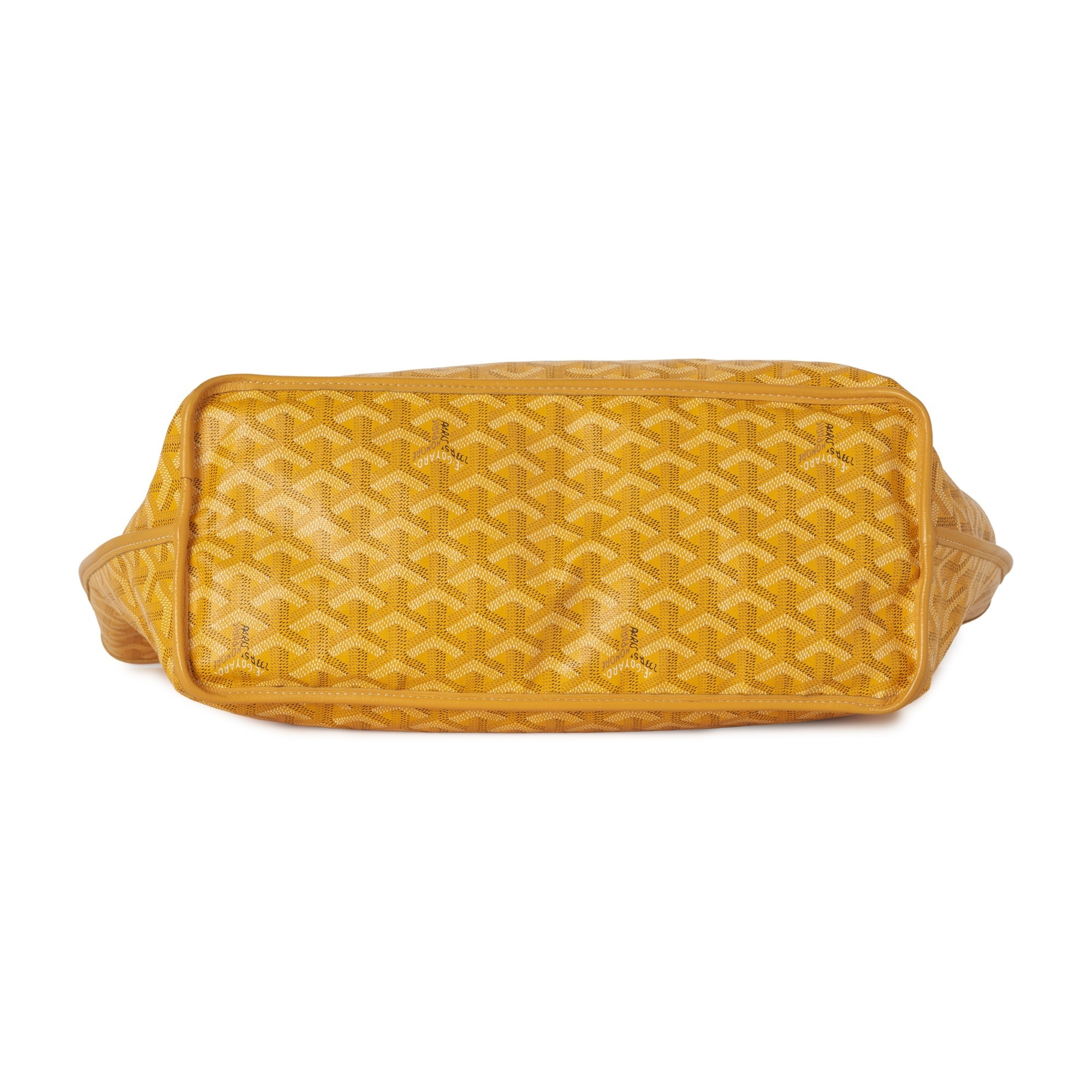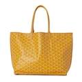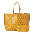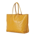 Goyard, a Saint Louis PM handbag w/ pouch, featuring the maker's signature geometric hand-painted Goyardine design onto a yellow coated canvas exterior with yellow leather trim, dual thin leather shoulder straps, an open top and a removable interior purse, measuring 15 by 28 by 34cm, with maker's dust bag and care guide