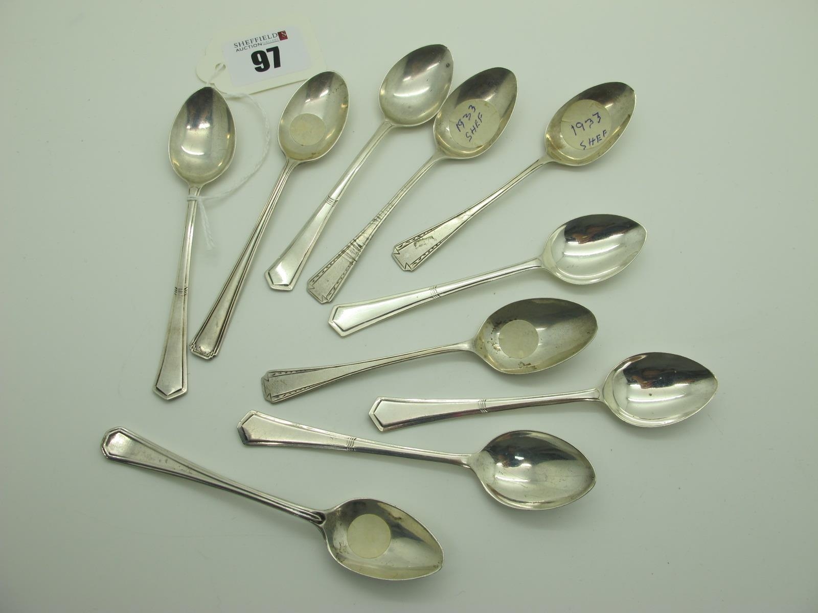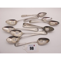 A Set of Five Hallmarked Silver Coffee Spoons, together with a set of three hallmarked silver coffee spoons and two further spoons (90grams). (10).