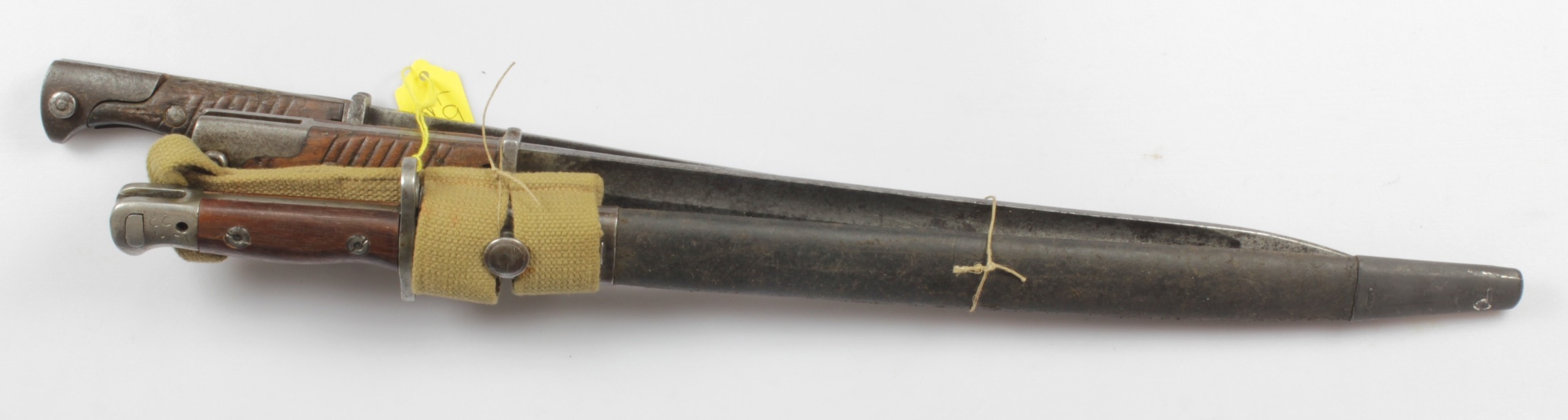 WW1 SMLE bayonet with scabbard and frog, with 2x WW2 German Butcher bayonets without scabbards (3)