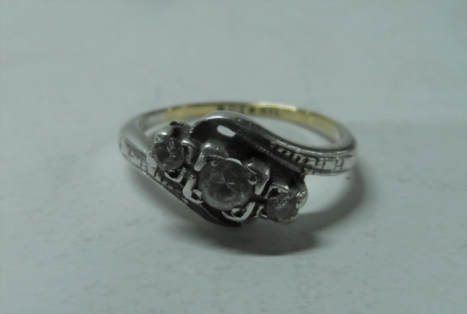 9ct yellow gold set with 3 round cut illusion set in silver ring,