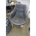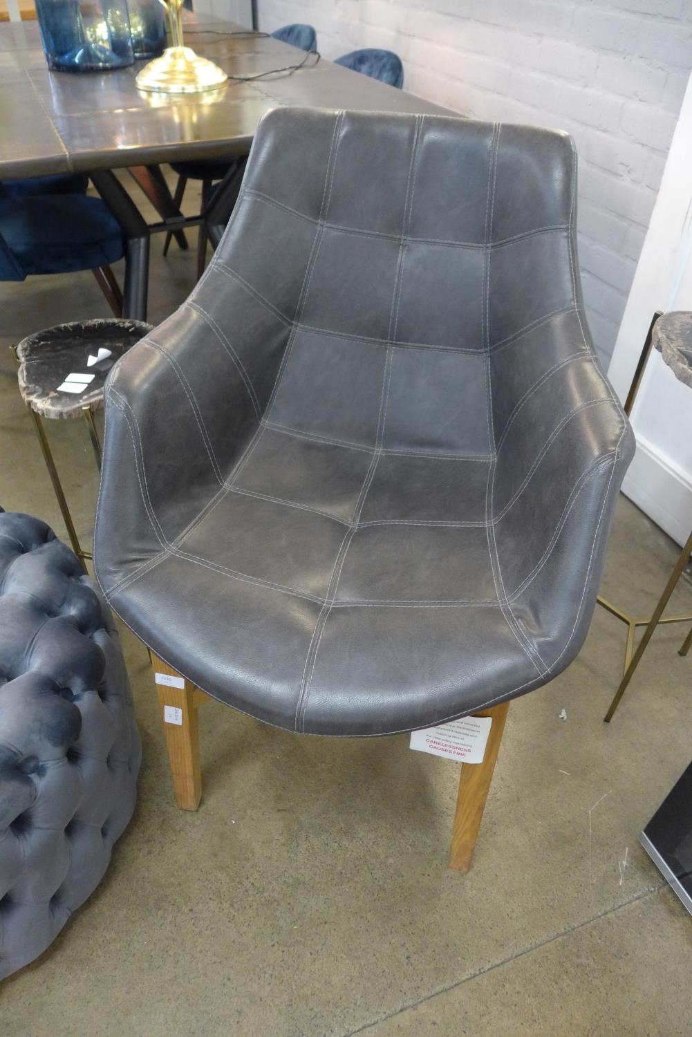A grey leather side chair