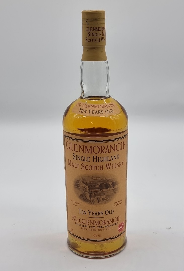 A 1 litre bottle of The Glenmorangie 10 Year Old Whisky, 1990s bottling.