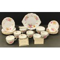 A Royal Crown Derby posies pattern six setting tea set, printed marks in green including cake plate, six cups, saucers and side plates milk jug and sugar bowl.