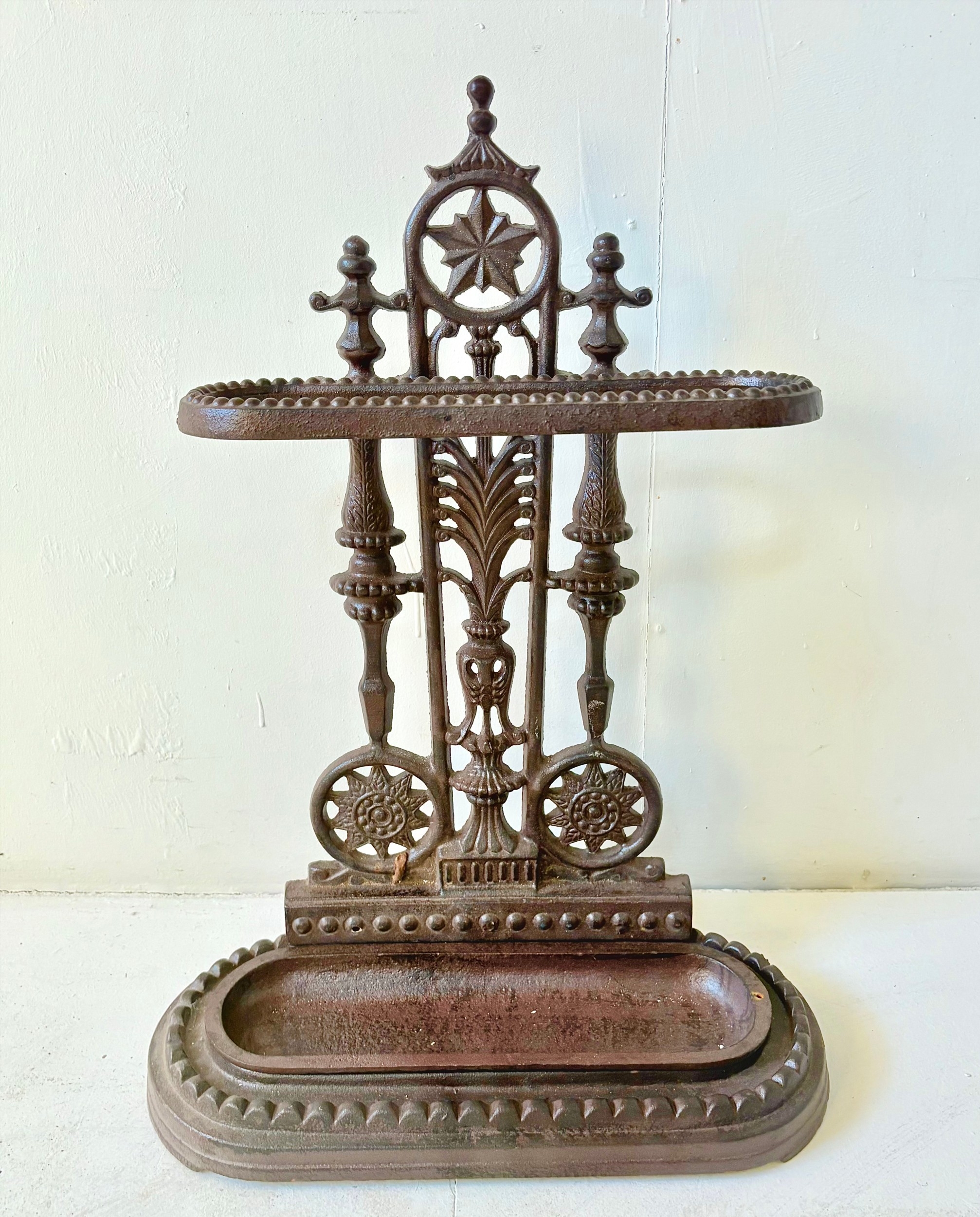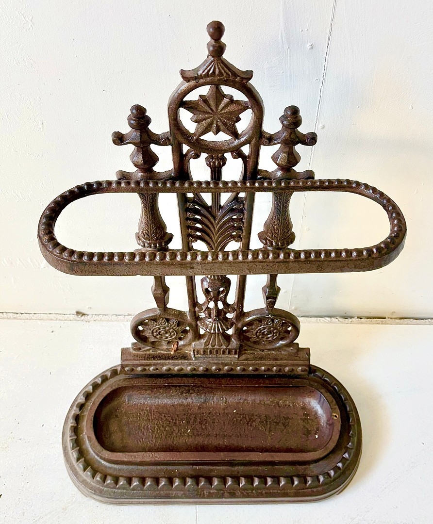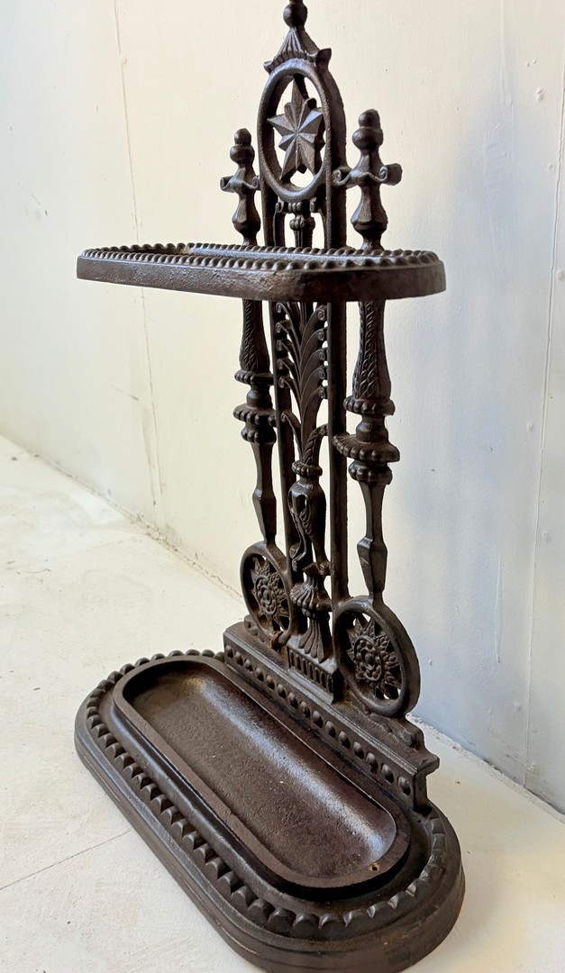 CAST IRON UMBRELLA STAND. 60cm H x 43cm W x 20cm D.