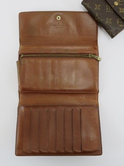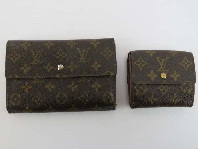 Two vintage Louis Vuitton monogram leather wallets. Date codes: THO327 / 084AN. (2 items) 18.7 cm length, 11 cm length.
