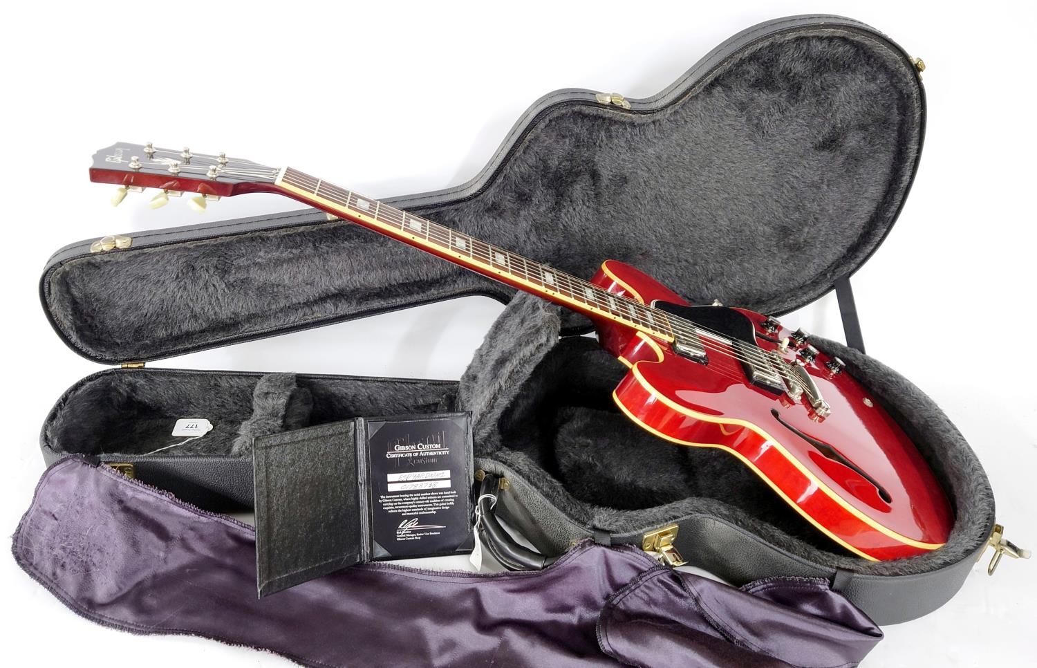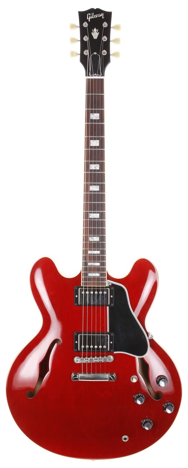 2008 Gibson Custom Shop Memphis ES-335 semi-hollow body electric guitar, made in USA; Body: cherry finish, very light surface scratching to back; Neck: mahogany; Fretboard: rosewood; Frets: good; Electrics: working; Hardware: good; Case: original hard case with certificate of authenticity; Weight: 3.80kg; Overall condition: very good