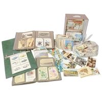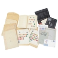 Stamps. A red box file and contents, comprising an album containing Strait Settlements stamps, together with packets of world stamps on album leaves to include Russia, Germany, USA, Austria, Japan, China, Norway, and Sweden, and assorted philatelic literature.