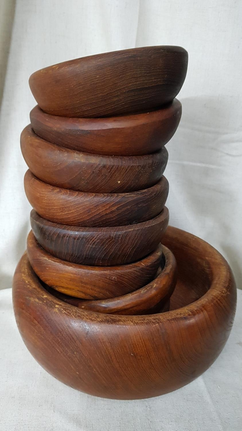 Solid Wood Salad Bowl and 8 x Matching Small Bowls
