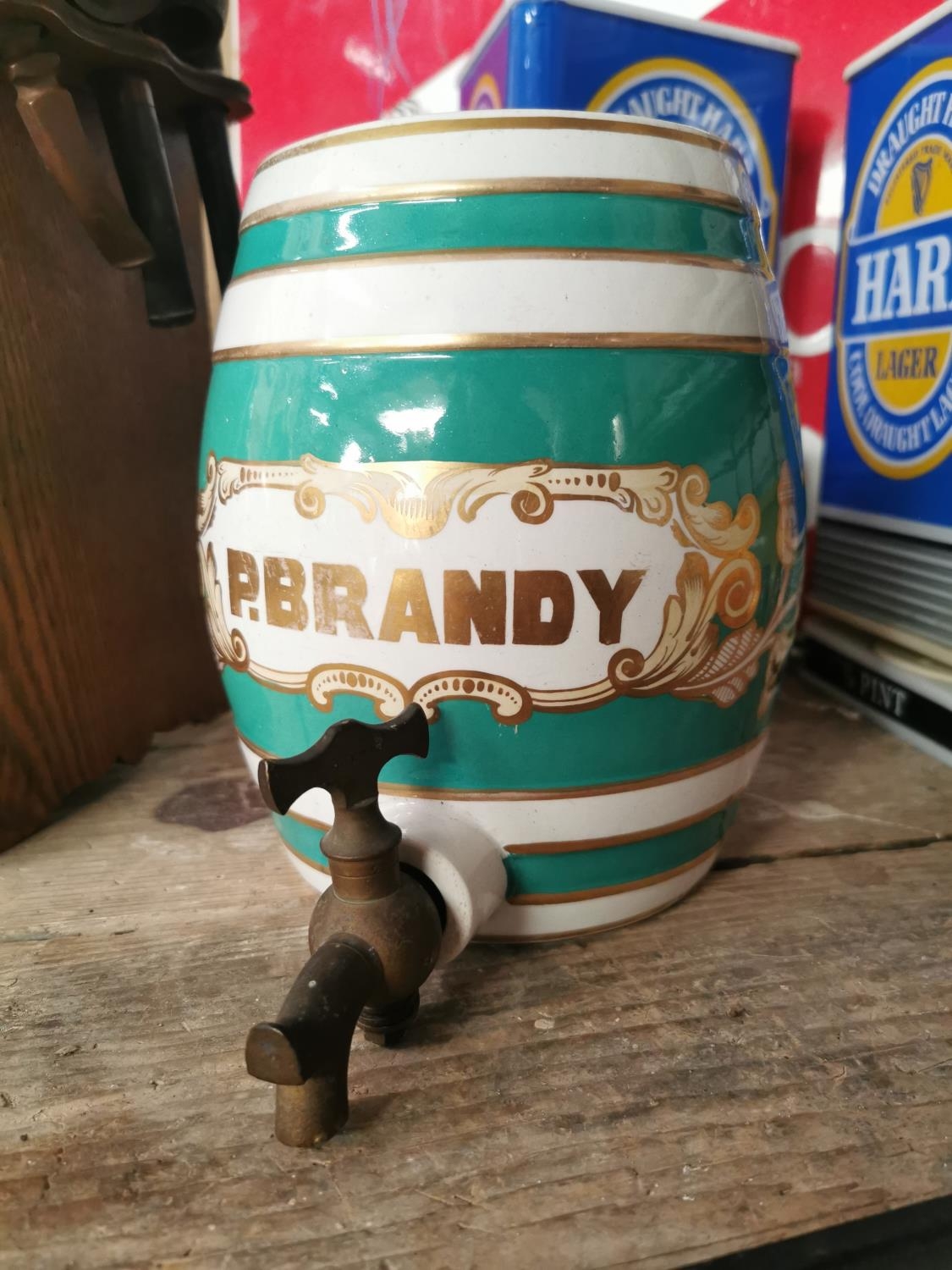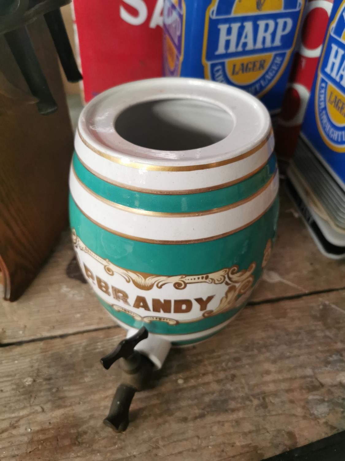 Rare early 20th C. miniature Brandy ceramic dispenser {20 cm H x 22 cm Dia.}.