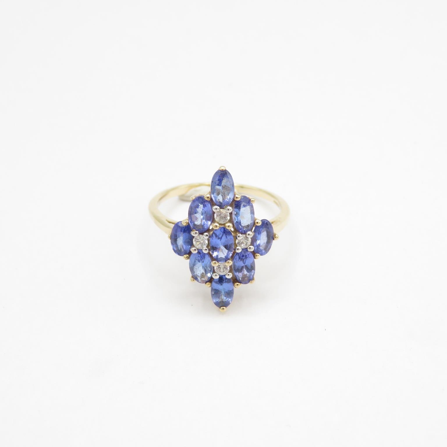 9ct gold tanzanite & white sapphire dress ring (2.9g) Size P
