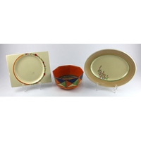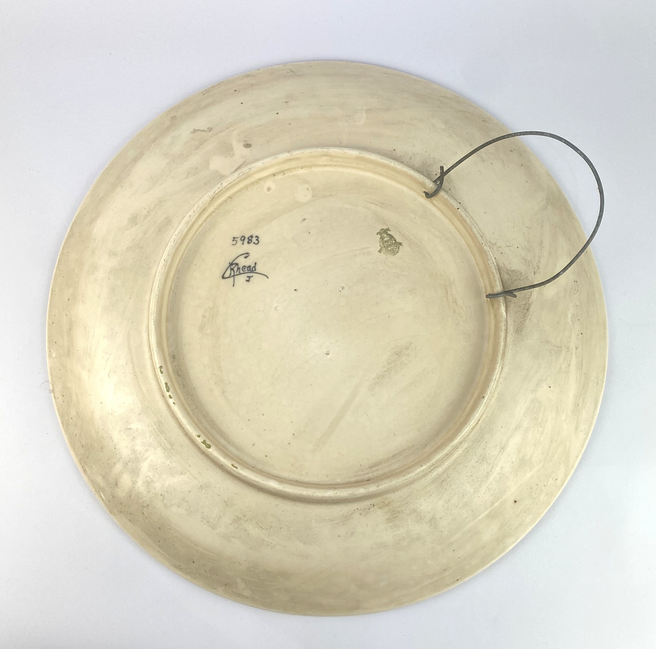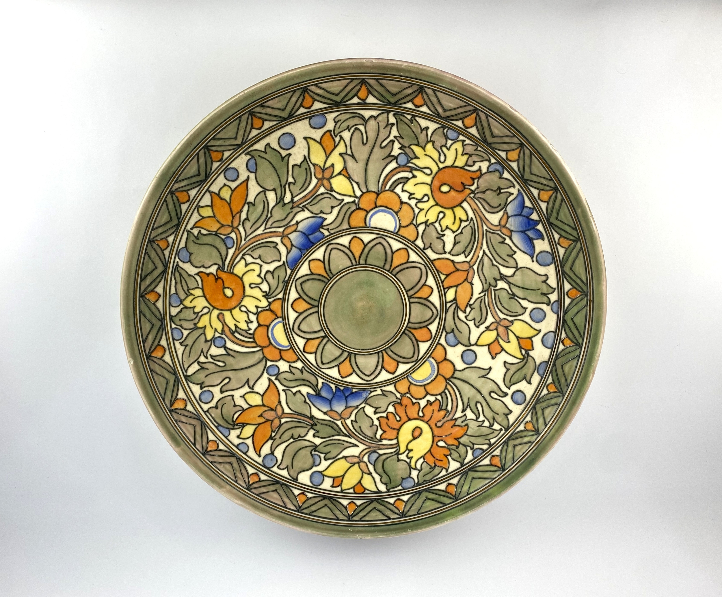 A large Charlotte Rhead charger with tubelined floral decoration in yellow, orange, blue and green 43.5cm diameter (a/f)